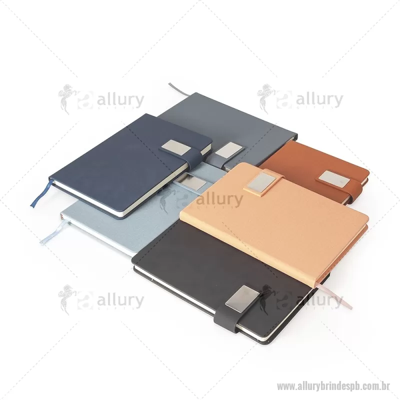 Caderneta de capa dura confeccionada em couro sintético, com acabamento elegante e fecho magnético para maior praticidade. Possui placa metálica personalizável na capa, ideal para aplicação de logotipo ou nome. Conta ainda com marca-página em fita de cetim e aproximadamente 96 folhas internas brancas pautadas, proporcionando organização e conforto na escrita. - - ALLPBBLC281