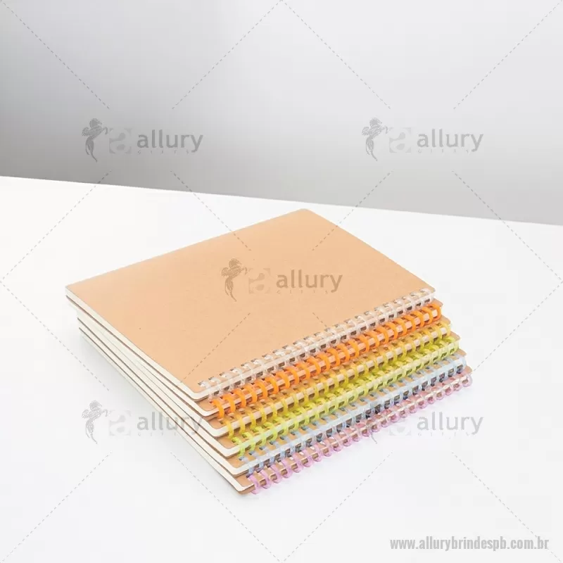 Caderno com capa em papel kraft e encadernação em espiral de plástico. Possui aproximadamente 80 folhas pautadas, ideal para anotações, estudos e organização do dia a dia. - - ALLPBCAD041