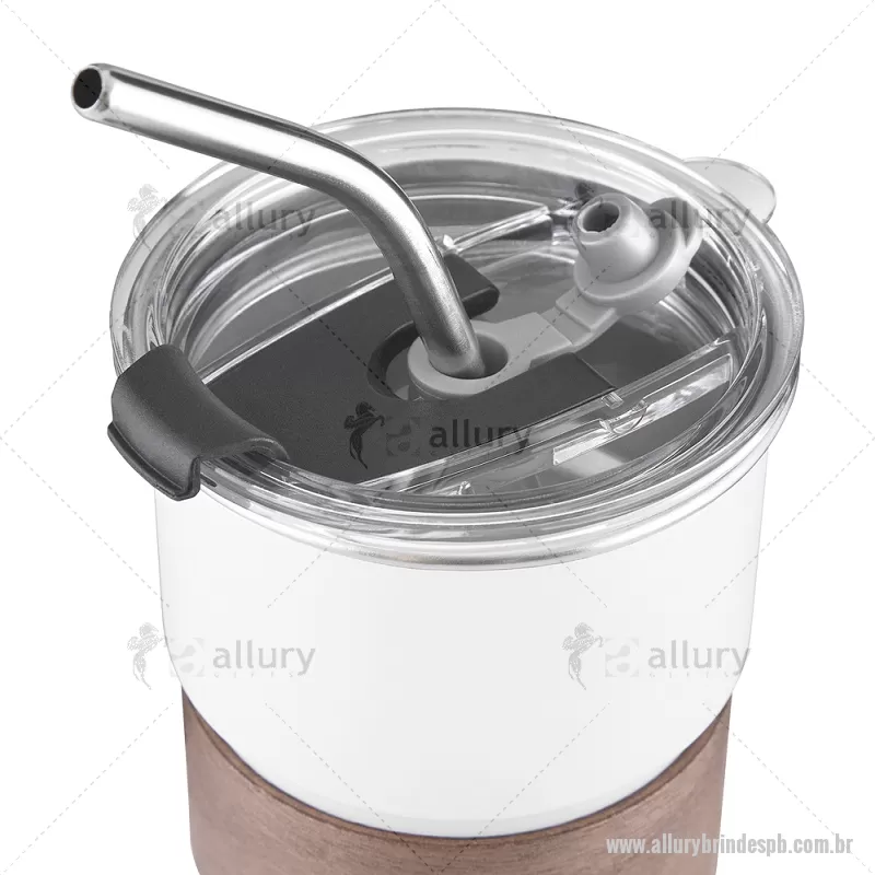Copo em inox com Canudo Copo de parede simples em aço inox 304 com capacidade de 250ml, com canudo em inox. Tampa em plástico poliestireno (PS) que também possui um bico como forma alternativa de uso. Com pegador em fibra de noz. Possui acabamento externo com pintura fosca. Peso do Produto: 0,100kg Dimensão do Produto: 9xø7,5cm - - ALLPBCPO150