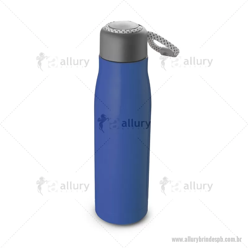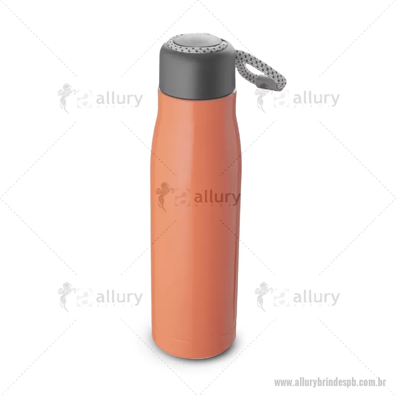 Garrafa térmica em aço inox 550ml brilhoso com parede dupla isolada a vácuo, com alça em corda para facilitar o transporte. Tampa plástica rosqueável e anel de silicone para vedação. Conserva líquidos : ??8 horas ??12 horas Dimensão do produto: 25xø7cm (AxøD) Peso do produto: 0,252kg - - ALLPBGAT101