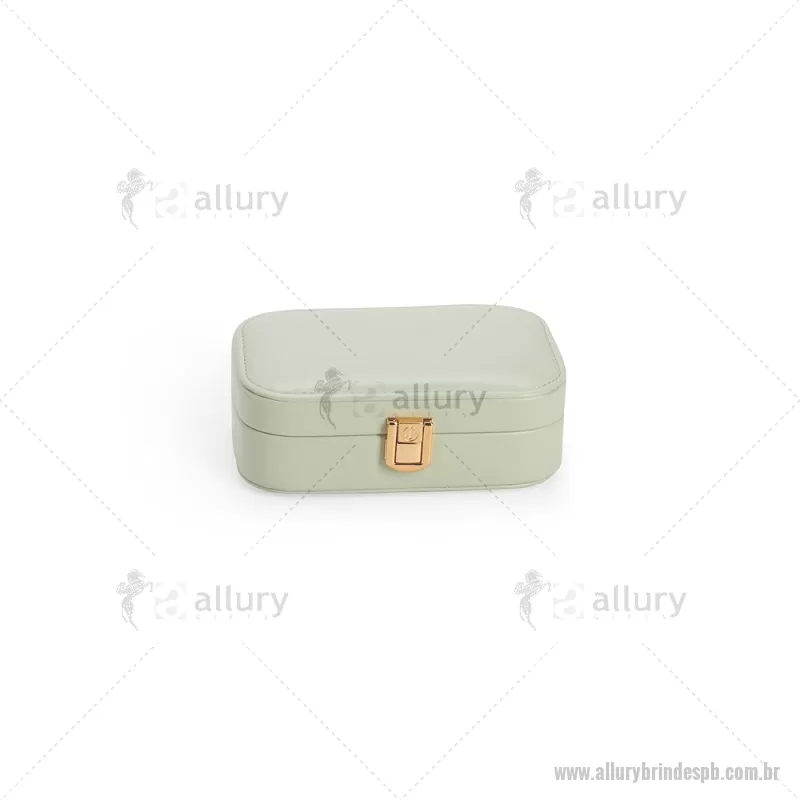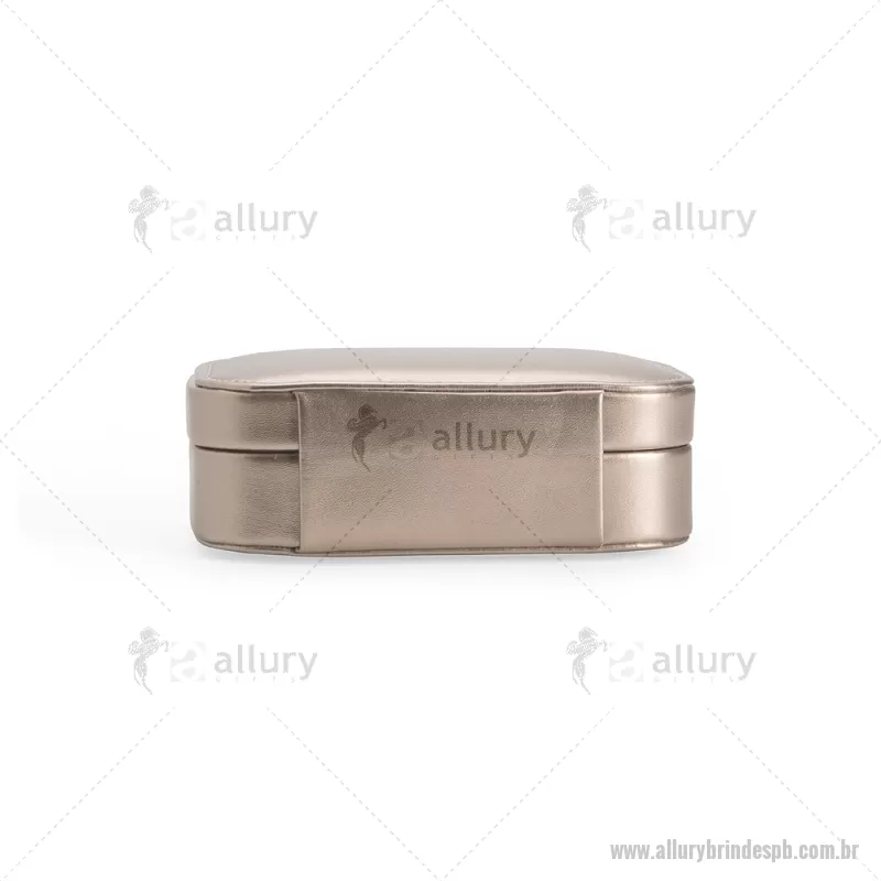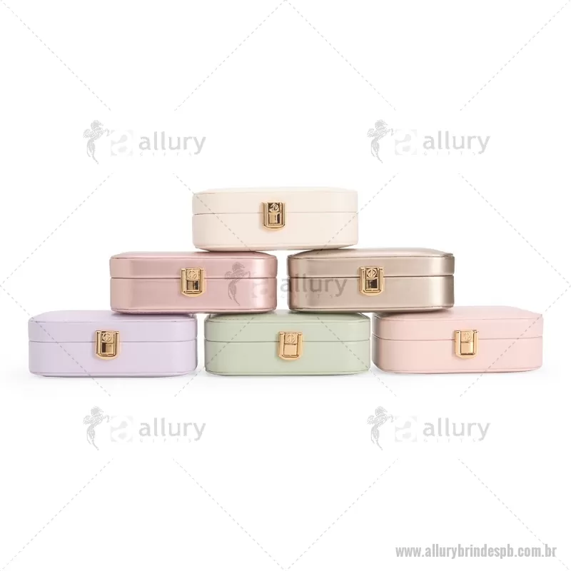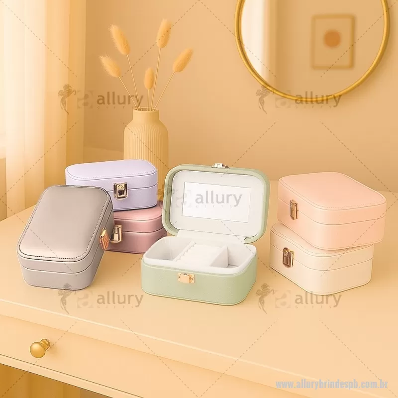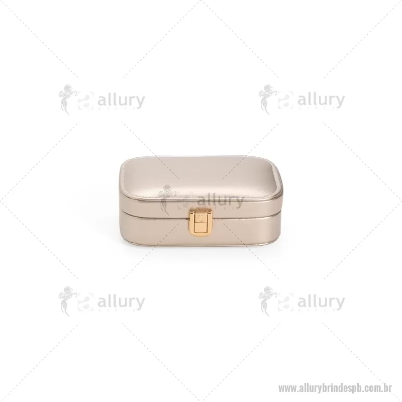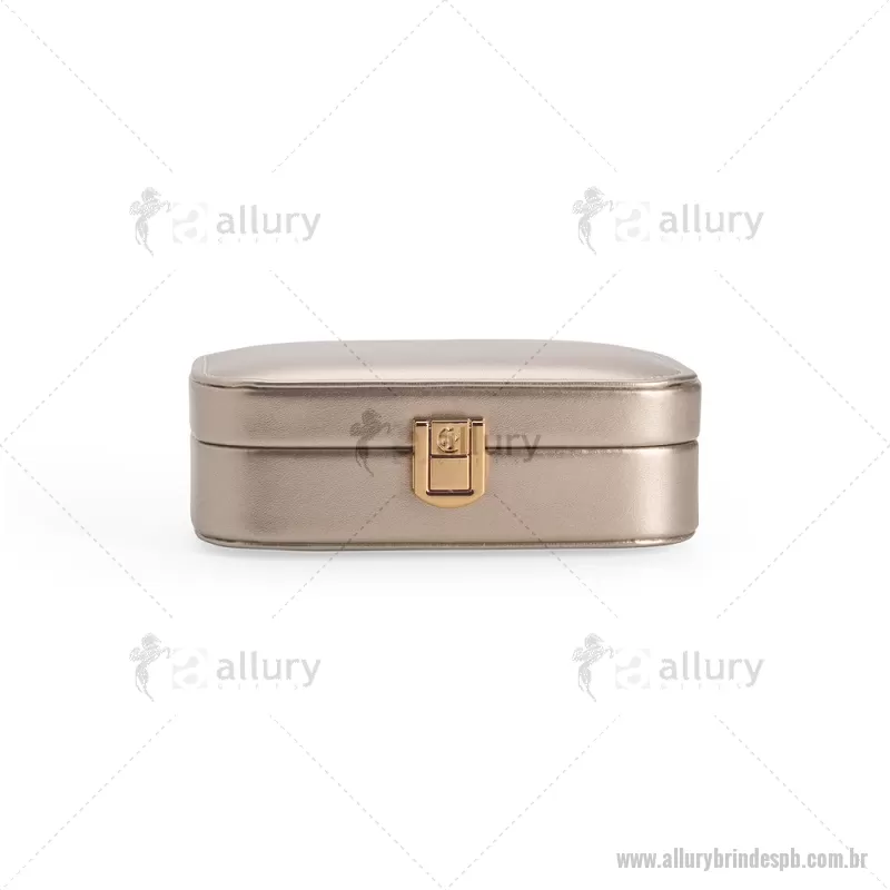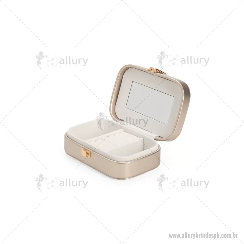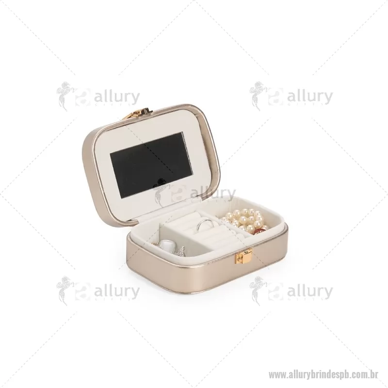 Porta-joias com espelho em poliuretano (PU) e revestimento interno em tecido aveludado. Conta com espelho interno, duas divisórias, repartição almofadada com ranhuras e trava de segurança. Medidas produto: Altura : 5 cm x Largura : 10 cm x Comprimento : 15 cm Peso aproximado (g): 167 - - ALLPBFEM123