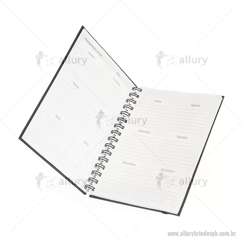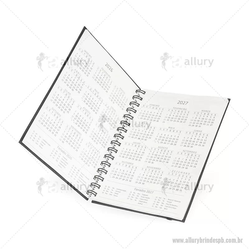 Planner com capa dura em papel cromado. Possui marca-páginas em fita de cetim e elástico para fechamento, oferecendo praticidade no uso diário. Inclui páginas para dados pessoais, calendários de 2025 a 2027 e diversas seções para planejamento, com espaços destinados a anotações diárias e semanais ao longo de todo o ano. Ideal para organizar rotinas, metas e compromissos com estilo e funcionalidade. - - ALLPBAGE033