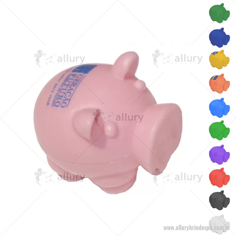 Porquinho Anti-stress Vinil Oca Personalizado Material: Vinil - Especificação: Vinil (Policloreto de vinil) Informação: Pantones específicos a partir de 1000 peças. * Disponível nas cores: azul escuro, azul claro, verde claro, verde escuro , amarelo, vermelho, laranja, roxo, rosa, branco e preto. Tipo de gravação: Tampografia Area de gravação: 20mm A x 30mm L Medida Produto: 58mm A x 58mm L x 75mm C Peso: 45g Quantidade Mínima: 200 un - - ALLPBANT028