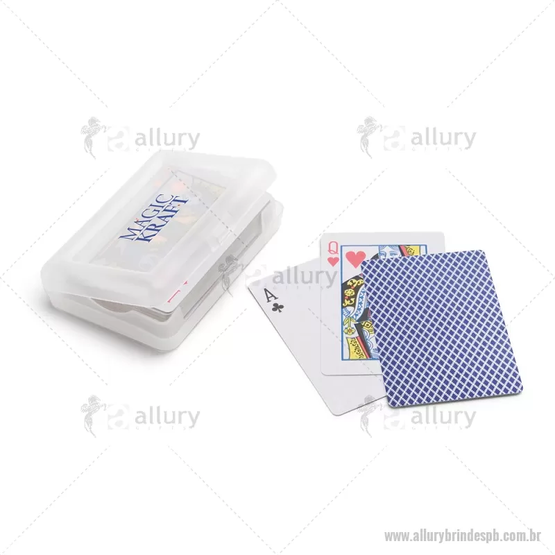 Baralho de 54 cartas em papel plastificado. Fornecido numa caixa rígida / estojo em PP. Medidas: 100 x 70 x 20 mm Peso do Produto (g.): 94 - - ALLPBJOG010