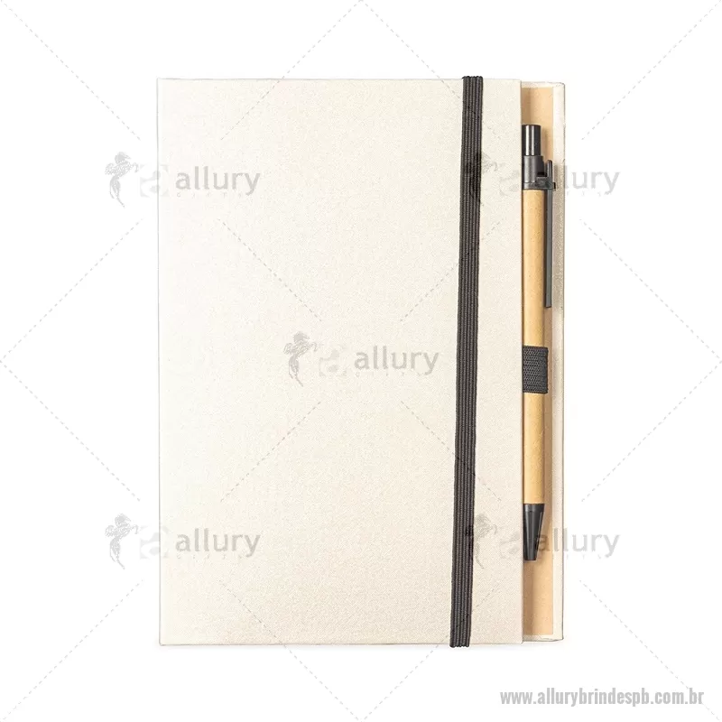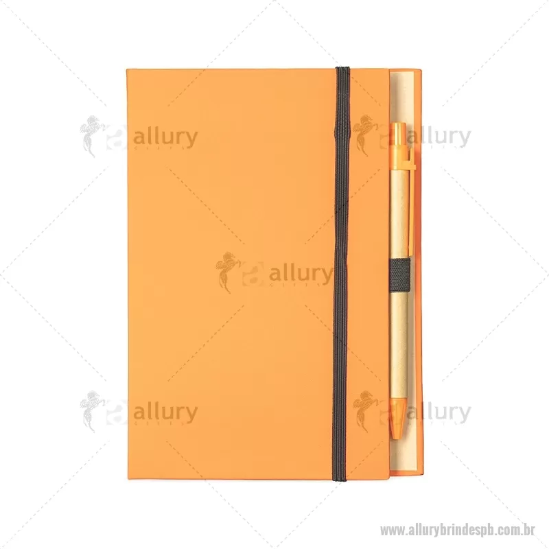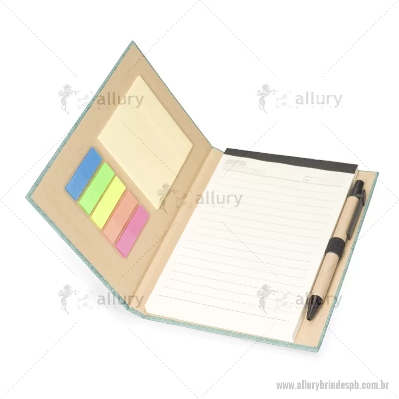 Bloco de Anotações com Autoadesivos e Caneta Com capa revestida em papel especial e fita elástica para fechamento. Contém aproximadamente 80 folhas amareladas destacáveis com pauta, além de um bloco com cerca de 20 folhas autoadesivas amarelas e aproximadamente 100 marcadores de página autoadesivos, divididos em cinco cores diferentes. Acompanha uma caneta esferográfica com carga azul de 1.0mm e acionamento por clique, corpo em papelão e demais componentes em plástico. Largura : 13 cm x Espessura : 1,4 cm x Comprimento : 18 cm Tamanho total aproximado (CxL): Caneta: 14 cm x 1 cm Peso aproximado (g): 187 - - ALLPBBLC267