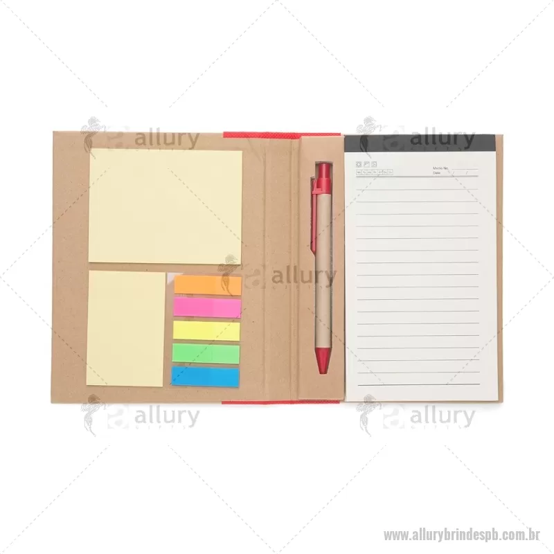 Bloco de Anotação com capa ecológica Autoadesivos e Caneta Bloco de anotações ecológico com caneta e autoadesivos, material kraft. Possui uma faixa colorida em tnt e fita elástica, parte interna com suporte para caneta de papelão com clip plástico; bloco amarelo médio com aproximadamente 20 folhas; bloco amarelo pequeno com aproximadamente 20 folhas; cinco blocos autoadesivos coloridos com aproximadamente 20 folhas cada e bloco de folhas pardas com aproximadamente 70 folhas. Utilize no dia-a-dia em seus desenhos, lembretes, contas e anotações em geral. Excelente brinde para ações de marketing e eventos corporativos. Tamanho total aproximado (CxL): 18,1 cm x 14,1 cm - Caneta 13,9 cm x 1,5 cm Peso aproximado (g): 186 - - ALLPBBLC054