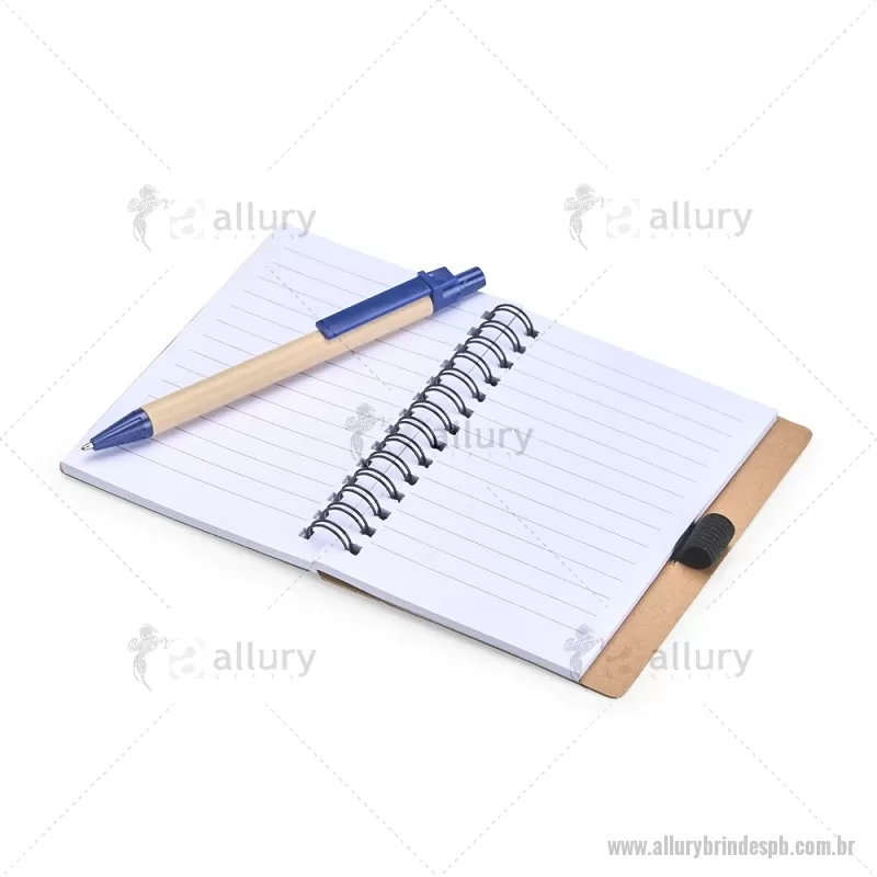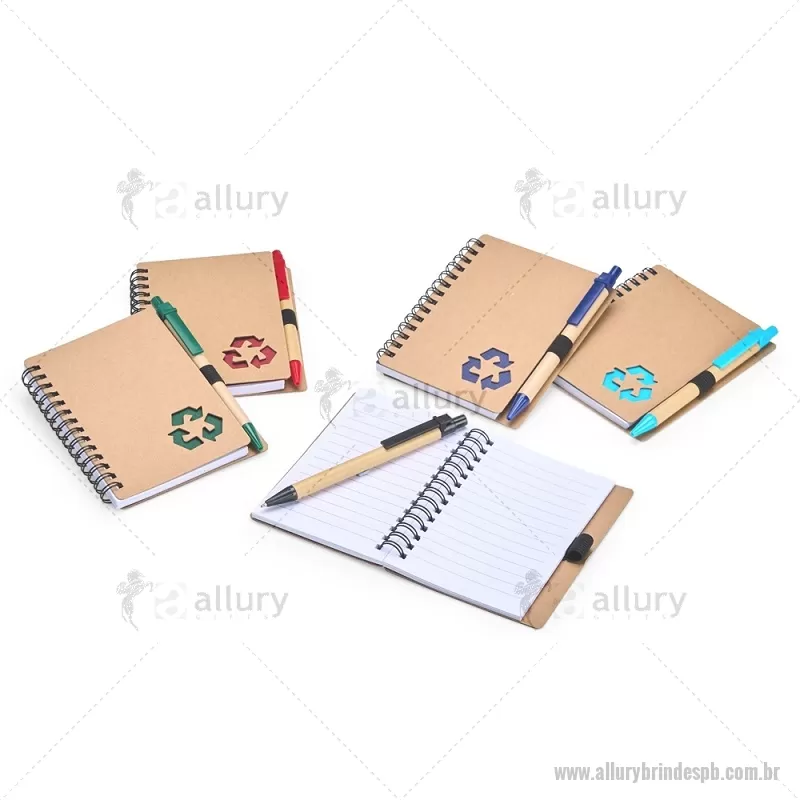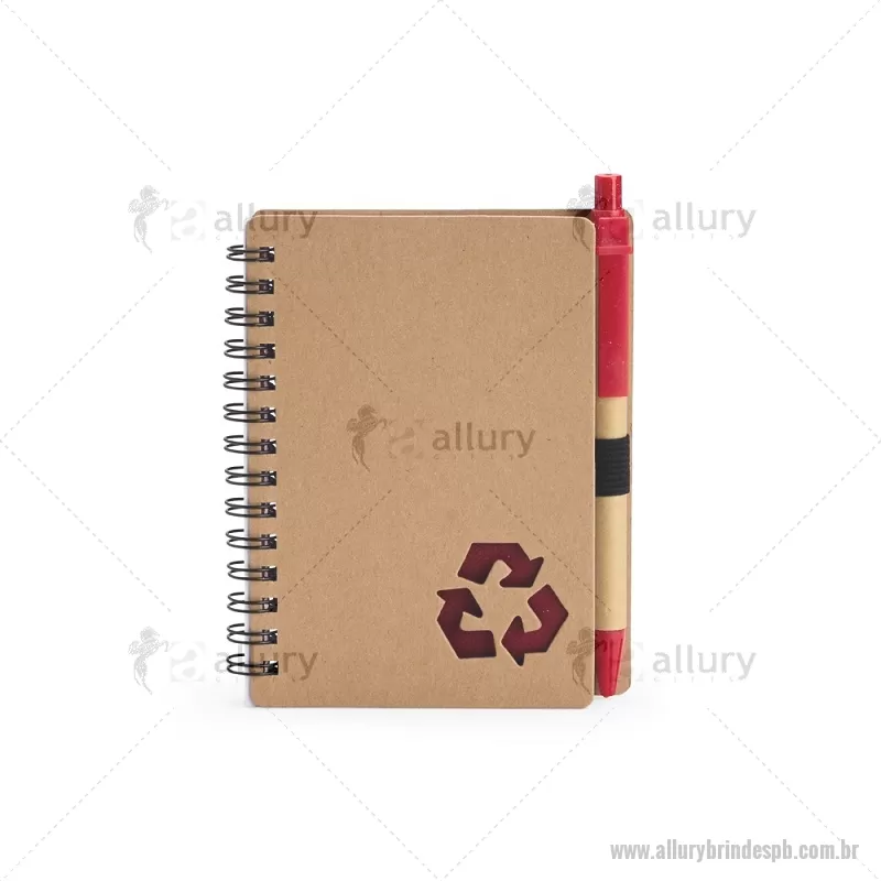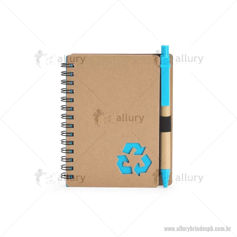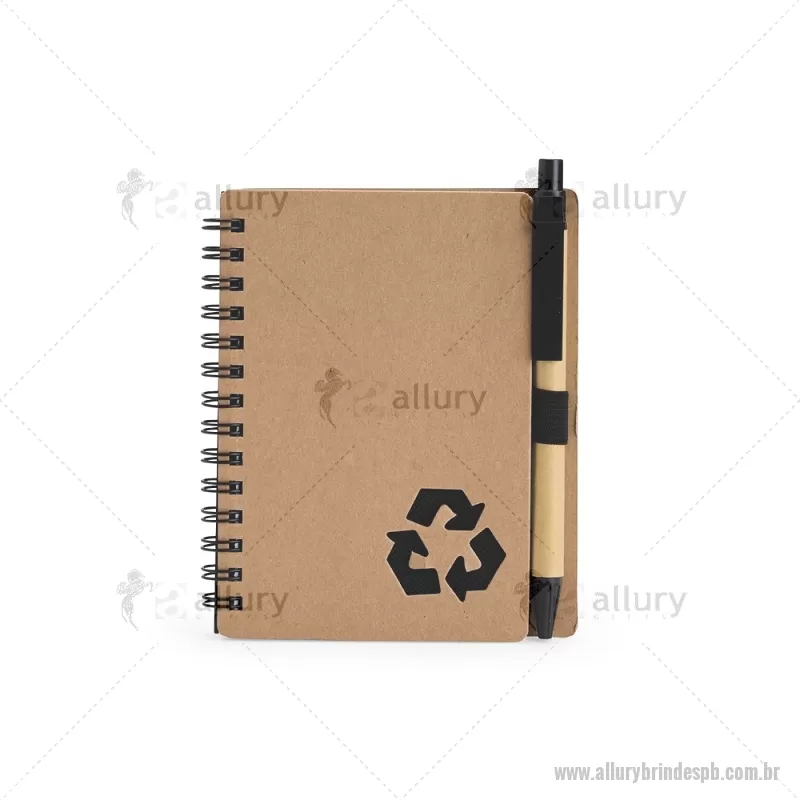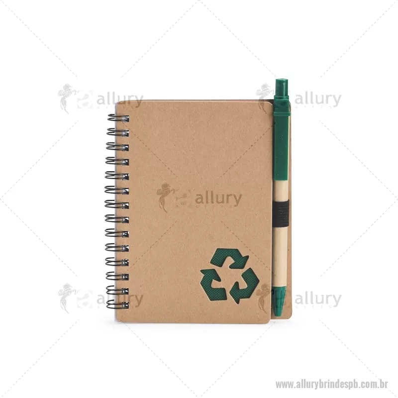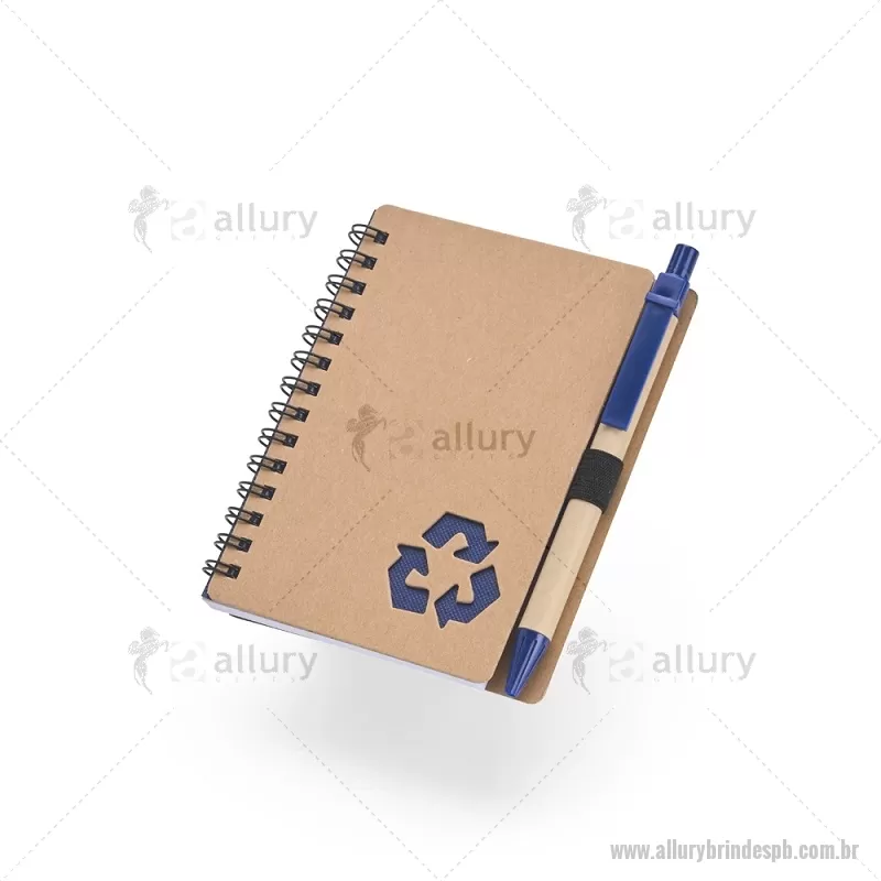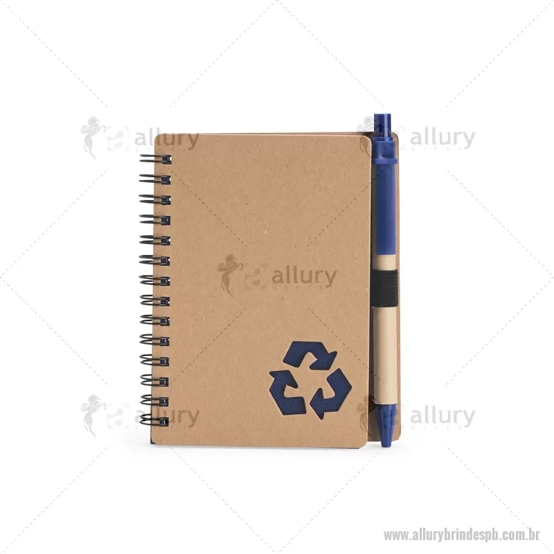 Caderno Ecológico com Caneta Descrição: Este caderno é uma ótima opção para fazer anotações sem abrir mão da sustentabilidade. Com capa produzida em papelão com detalhe vazado que remete ao símbolo da reciclagem, ele conta com encadernação Wire-O e aproximadamente 70 folhas brancas pautadas, trazendo muitas possibilidades para realizar todos os tipos de anotações durante um dia em movimento. O caderno acompanha uma caneta esferográfica de carga azul de 1,0 mm com corpo em papelão e clip, acionamento em clique e ponteira em plástico. A capa contém um elástico para abrigar a caneta junto ao caderno. Largura : 10,5 cm x Espessura : 1 cm x Comprimento : 13 cm Tamanho total aproximado (CxL): Caneta: 14 cm x 1 cm Peso aproximado (g): 80 - - ALLPBBLC266