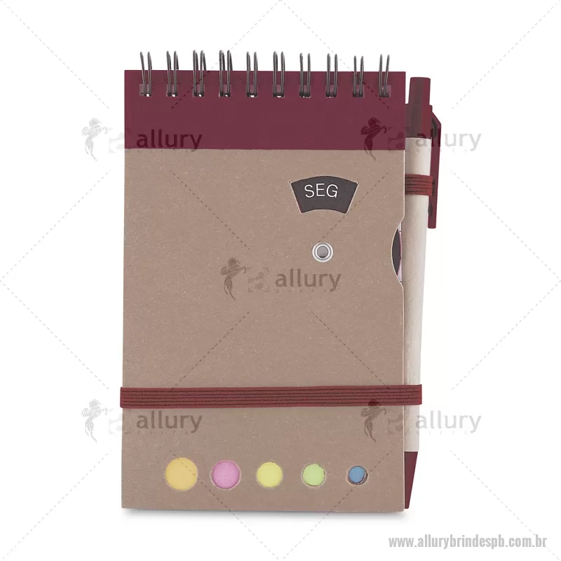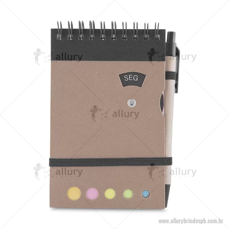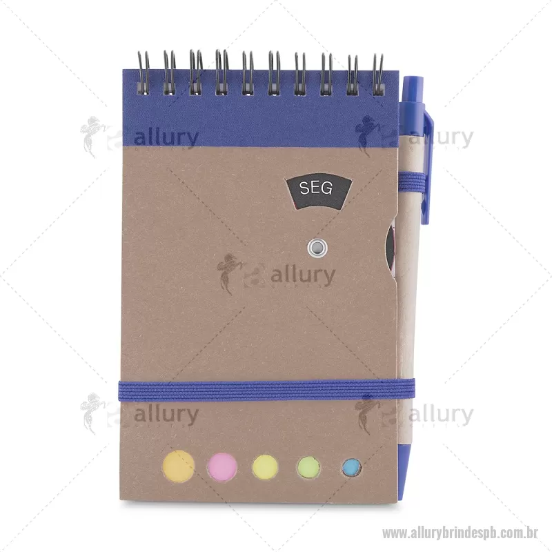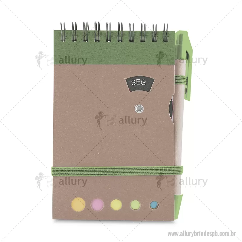 Mini caderno A6 com caneta com capa em papel kraft, com 70 folhas pautadas e blocos adesivos (sticky notes) coloridos. Acompanha disco rotativo na capa com os dias da semana e caneta produzida em papelão reciclado com detalhes em plástico e escrita em azul. Peso do Produto: 0,088kg (Caderno) Peso do Produto: 0,004kg (Caneta) Dimensão Produto: 14,5x9cm (Caderno) Dimensão do Produto: 3,6xø0,9cm (Caneta) - - ALLPBBLC275