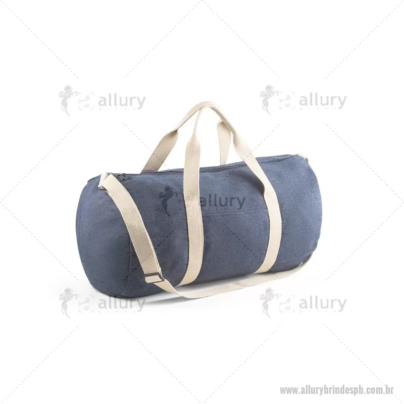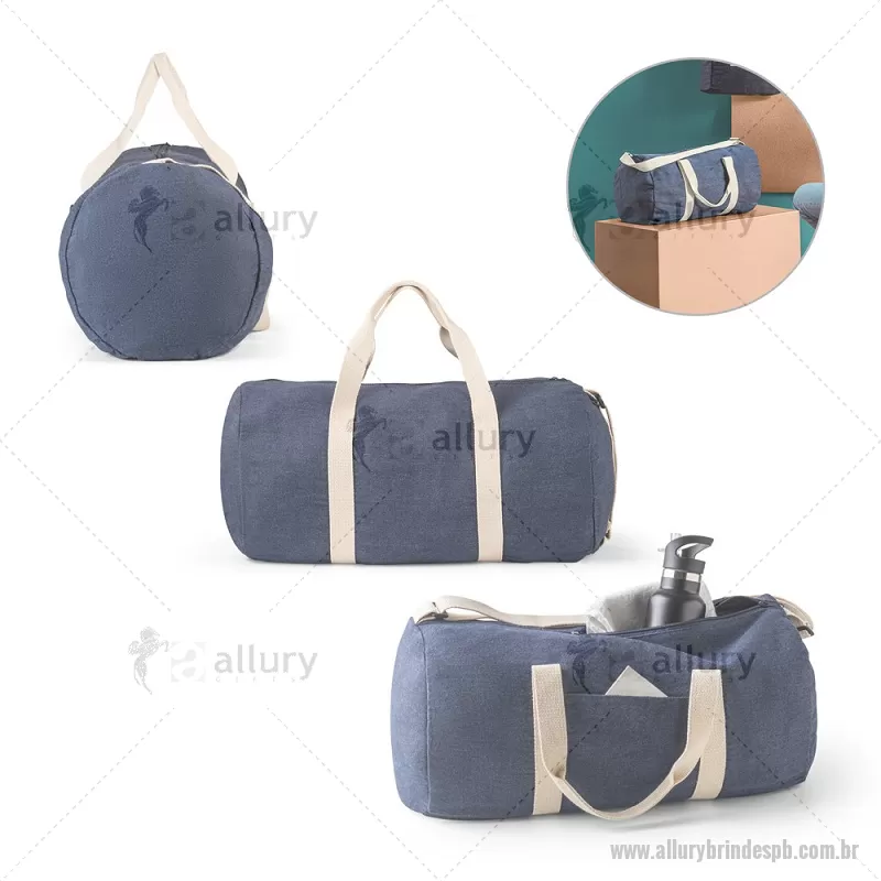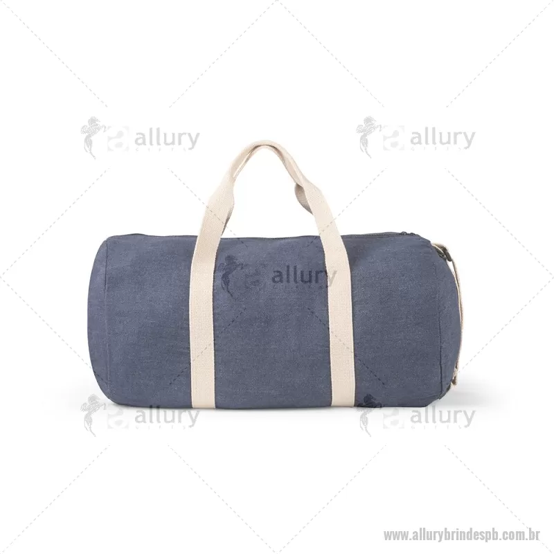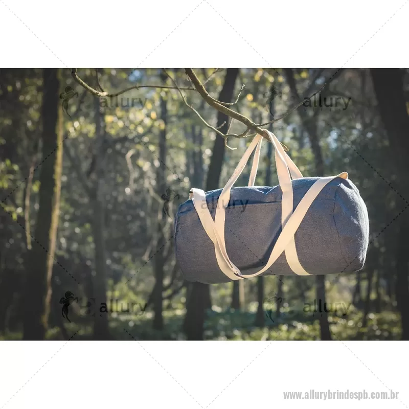 Bolsa esportiva ou viagem em denim reciclado (300 g/m²) Sacola esportiva ou viagem em denim reciclado (300 g/m²). Contém bolso frontal, fecho duplo e costuras reforçadas. Possui alças em webbing de algodão e alça de ombro ajustável até 130cm. Capacidade até 25 L. Ø260 x 480 mm Peso do Produto (g.): 249 - - ALLPBBOL043