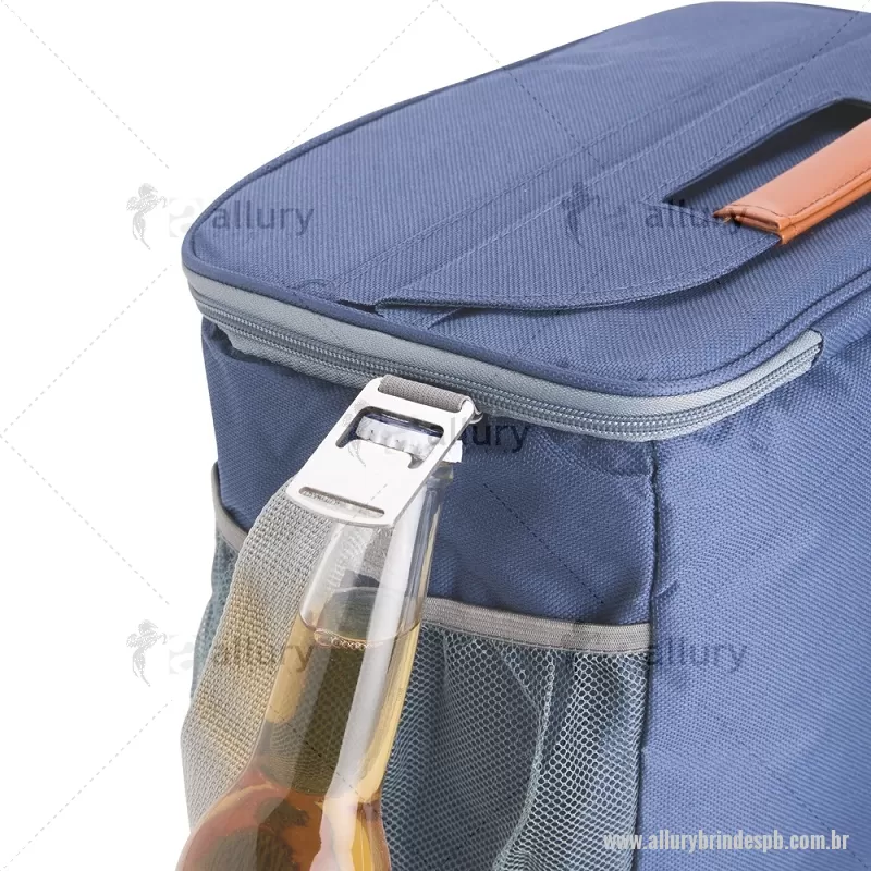 Bolsa térmica de 11 litros feita em Oxford impermeável, com detalhes em couro sintético e revestimento interno em PEVA para melhor conservação da temperatura. Possui bolso frontal aberto, dois bolsos laterais em tela, alça de mão, alça transversal ajustável e abridor de garrafas em inox acoplado na lateral. Prática e ideal para uso diário. - - ALLPBBT098