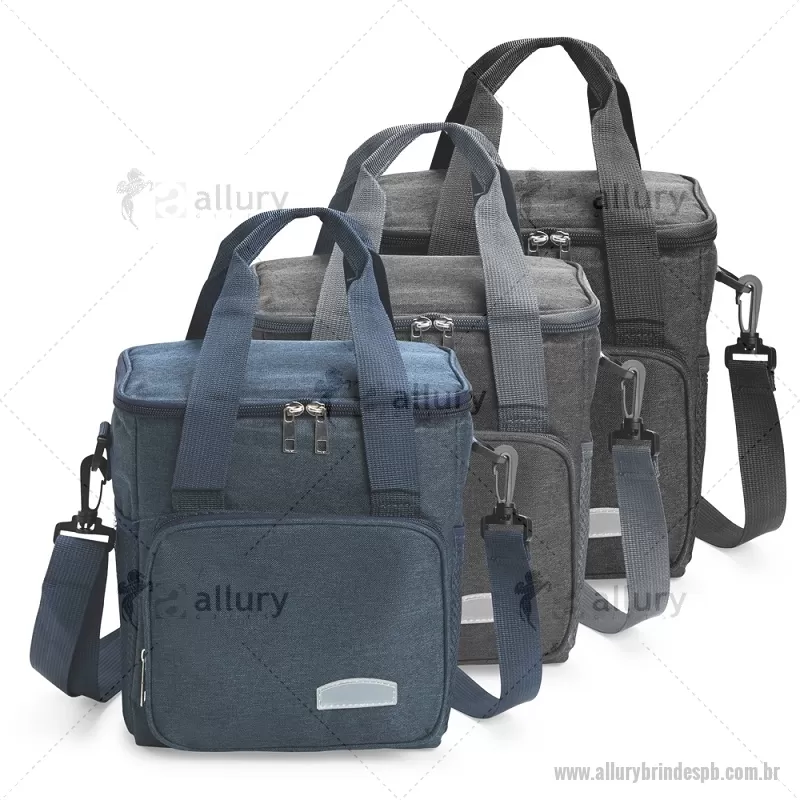 Bolsa térmica de 11 litros feita em Oxford resistente à água, com revestimento interno em PEVA e tampa isolada com folha de alumínio. Possui bolso frontal com zíper, dois bolsos laterais em tela, alças laterais fixas e alça transversal removível. Ideal para manter alimentos e bebidas na temperatura por mais tempo. - - ALLPBBT106
