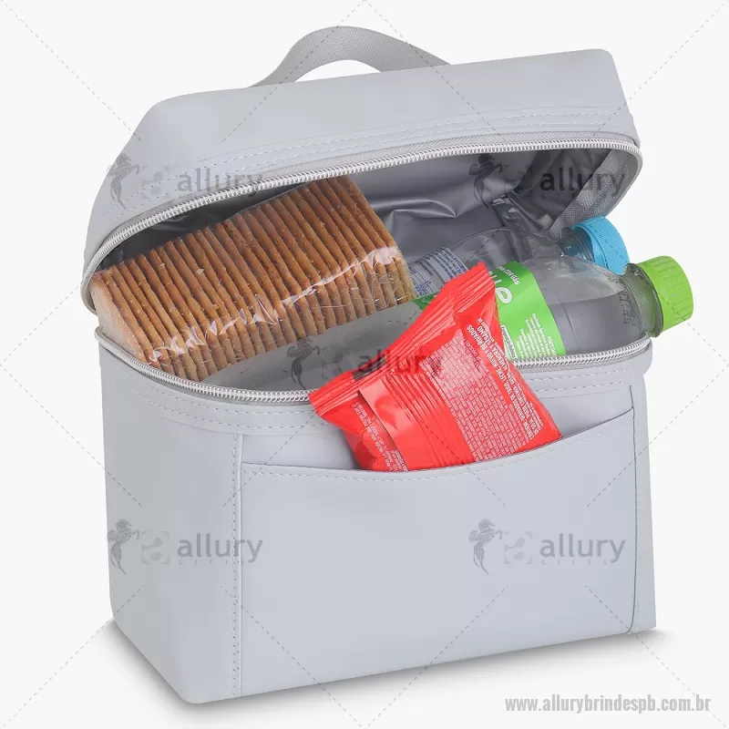 Bolsa térmica 5 lts em PU com zíper, parte interna costurada, com alça de mão e bolso frontal. Dimensão Produto: 18x21,5x13cm (AxLxP) Peso do Produto: 0,150kg Volume: 5L - - ALLPBBT095