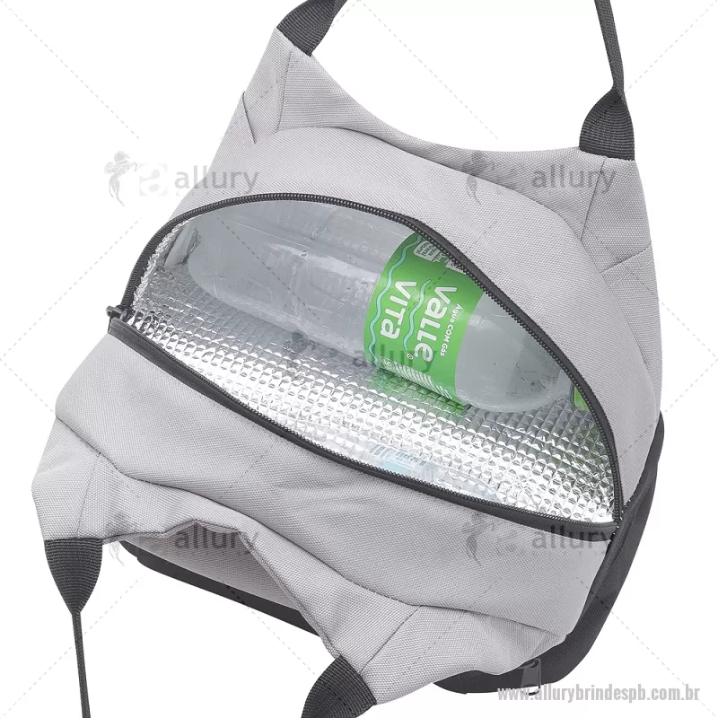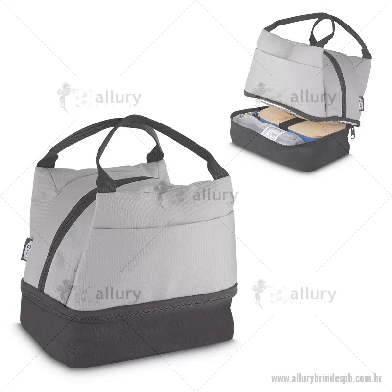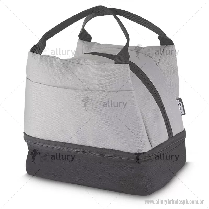 Bolsa térmica 7litros em tecido PET Reciclado com 2 compartimentos térmicos costurados, bolso frontal e alça de mão. Dimensão Produto: 21x24x15cm (AxLxP) Peso do Produto: 0,130kg Volume: 7L - - ALLPBBT094