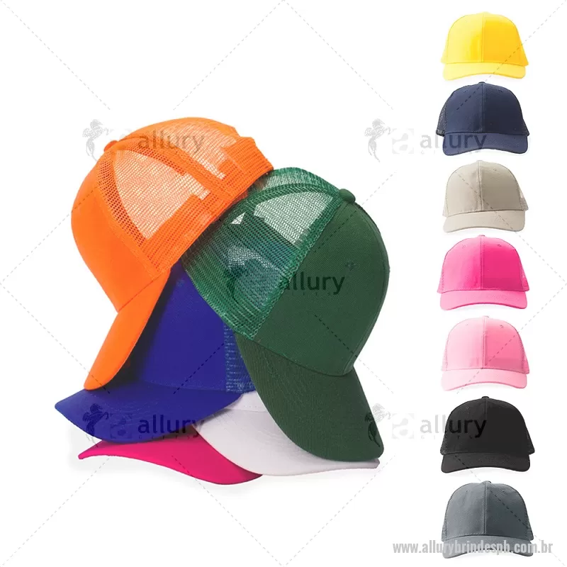 Boné de aba curva em poliéster com laterais em tela de nylon respirável. Possui fecho plástico ajustável na parte traseira, garantindo conforto e praticidade no uso diário. - - ALLPBBON011