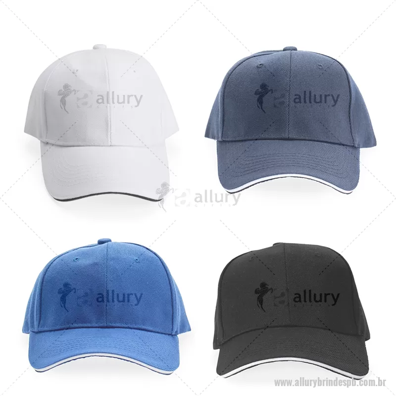 Boné Poliéster Aba Curva Descrição: Boné confeccionado em poliéster resistente a respingos dágua e com aba curva. Em tamanho único, ele é ajustável por meio de suas faixas de velcro na parte de trás. Altura : 13 cm x Largura : Aba: 18 cm Profundidade : Aba: 7 cm x Circunferência : 55,5 cm Peso aproximado (g): 73 - - ALLPBBON010