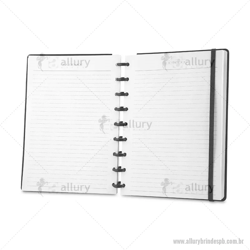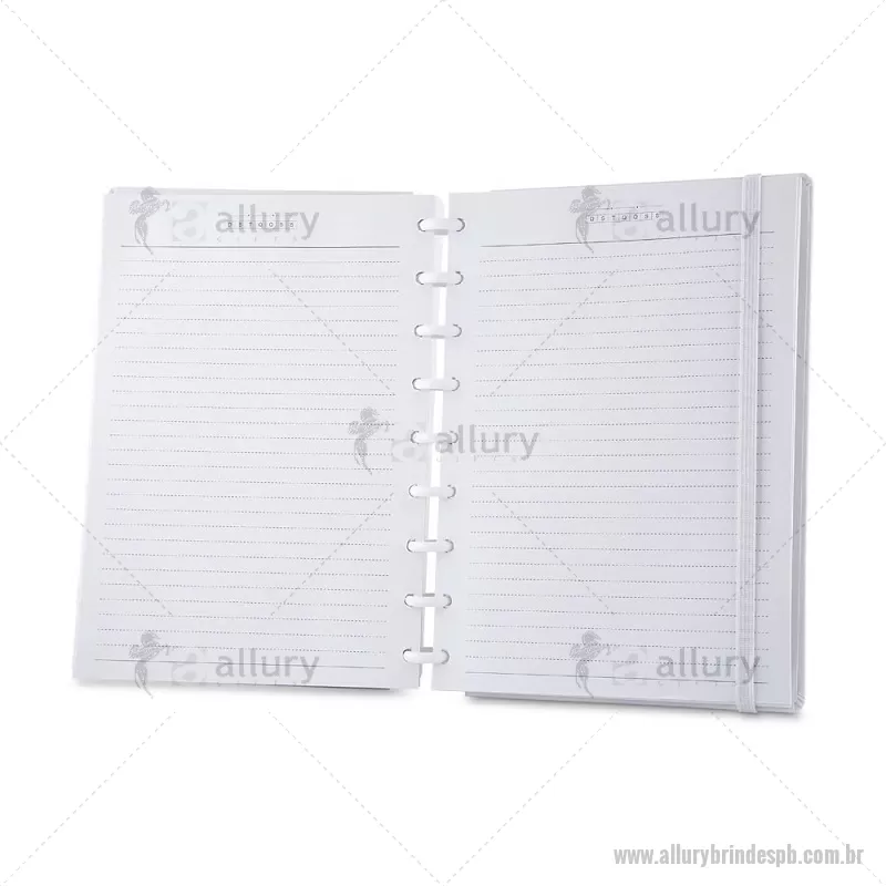 Caderno de anotações com folhas removíveis, capa dura cartonada revestida em material sintético, 80 folhas pautadas 75 g/m², calendário anual, manual de instruções, bolso plástico interno para documentos e elástico para fechamento seguro. Peso do Produto: 0,354kg Dimensão do Produto: 23,5x18cm - - ALLPBCAD035