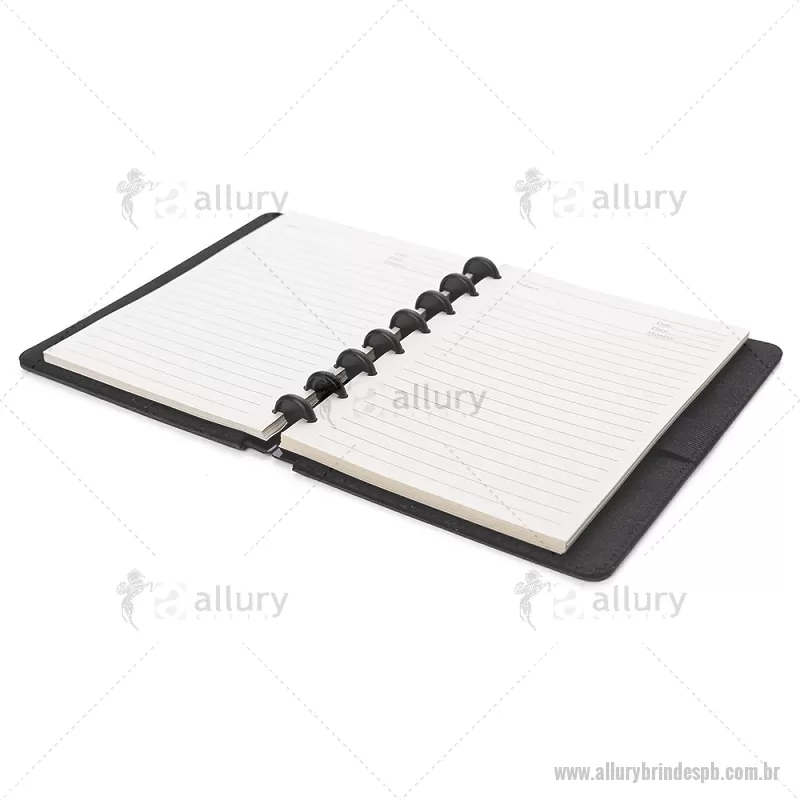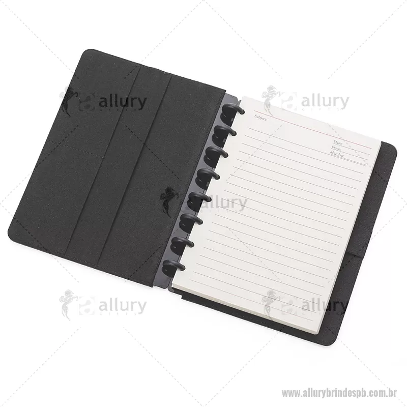 Caderno de anotações com capa dura em material sintético, contendo: Miolo de 80 folhas pautadas na cor bege; Porta Canetas; Porta Cartões; Obs.: As folhas do miolo são destacáveis. Dimensão do produto: 22,3x18,0x2,1cm (AxLxP) Peso do Produto: 0,438kg - - ALLPBCAD025