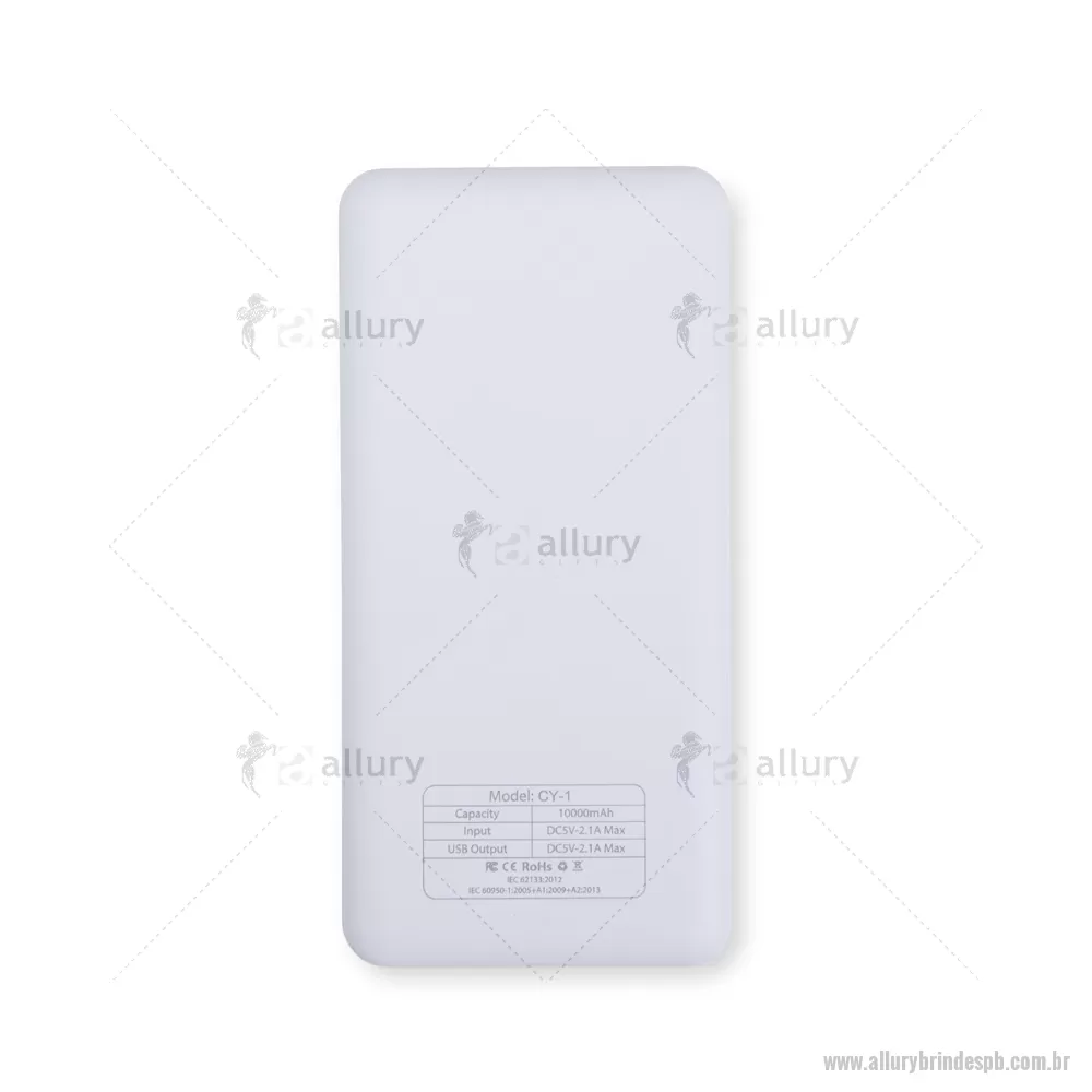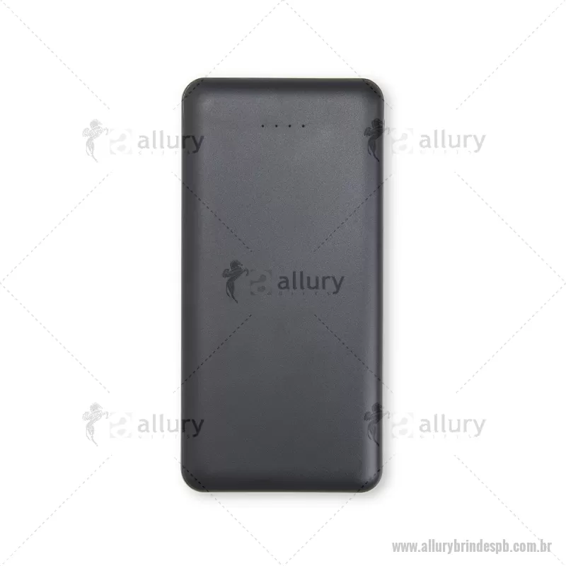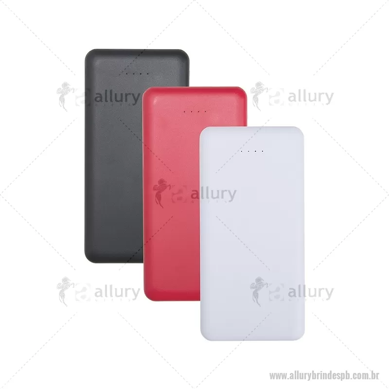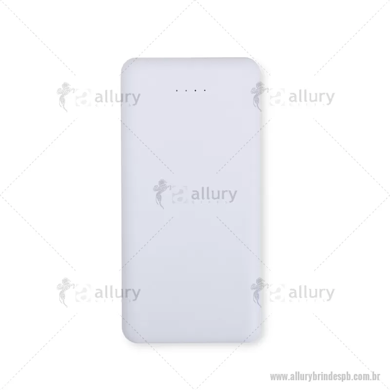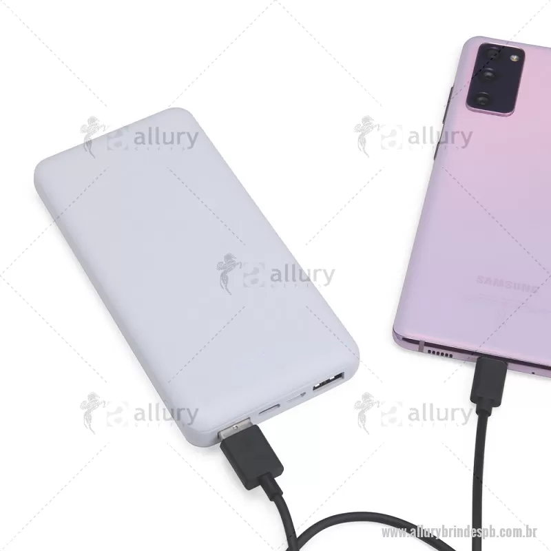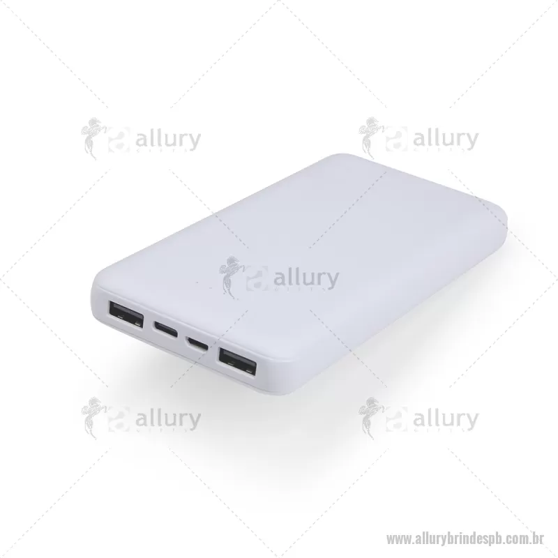 Power Bank 10.000mAh com Indicador LED Descrição: Power bank com estrutura em plástico com potência de 10.000mAh e quatro luzes de LED para indicar o status de carga do próprio carregador portátil. Possui quatro entradas diferentes: duas portas USB, uma porta Micro USB e outra USB-C. Altura : 14 cm x Espessura : 1,5 cm x Comprimento : 7 cm Peso aproximado (g): 243 - - ALLPBTEC531