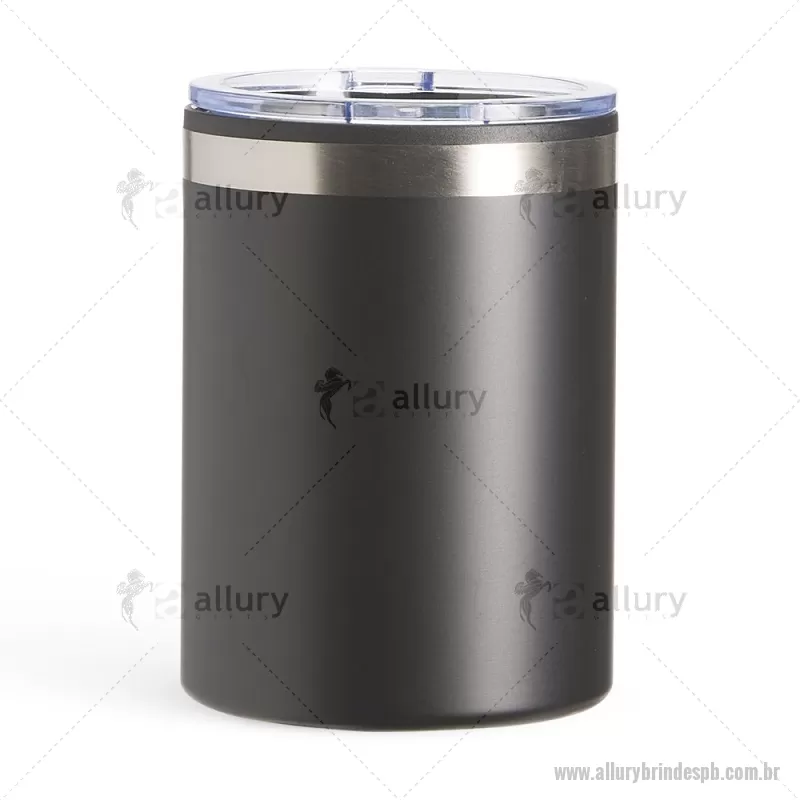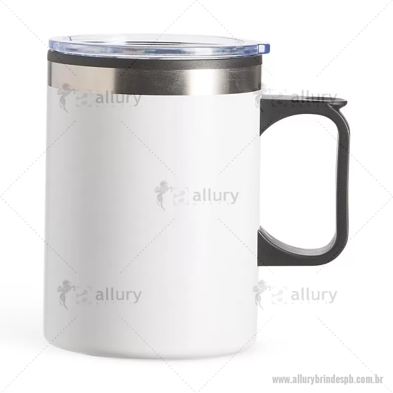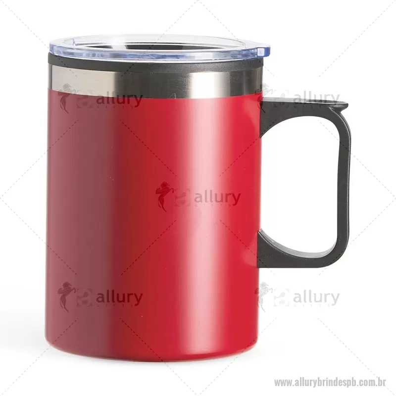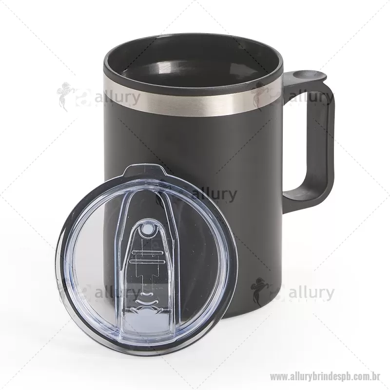 Caneca de 375 ml com interior plástico e revestimento externo em inox, que evita o aquecimento das mãos. Possui tampa com bocal e trava de segurança, além de base emborrachada antiderrapante. Prática e ideal para o dia a dia. - - ALLPBCAN098