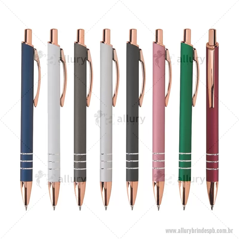 Caneta em metal com acionamento por clique e carga esferográfica azul de 1,0 mm. Leve e confortável, garante escrita precisa e uso prático no dia a dia. - - ALLPBCMT303