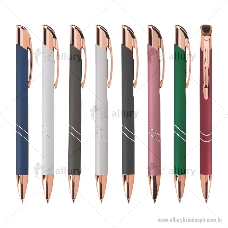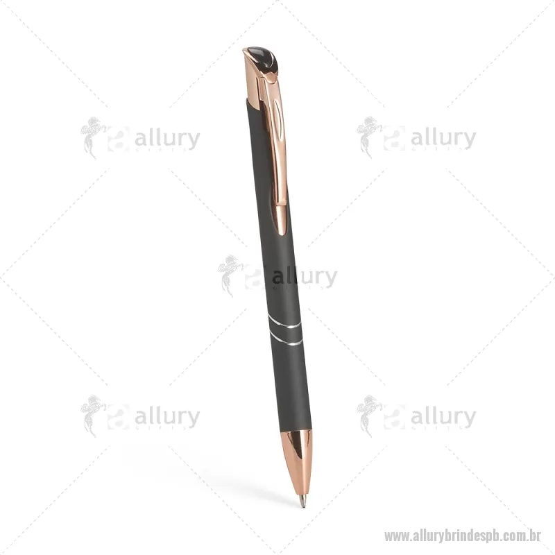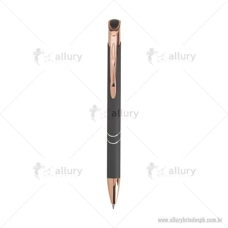 Caneta esferográfica com corpo metálico e detalhes em plástico, acionamento por clique e carga azul de 1,0 mm. Leve e confortável, garante escrita suave e precisa para o uso diário. - - ALLPBCMT304