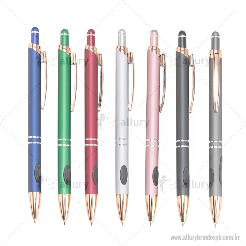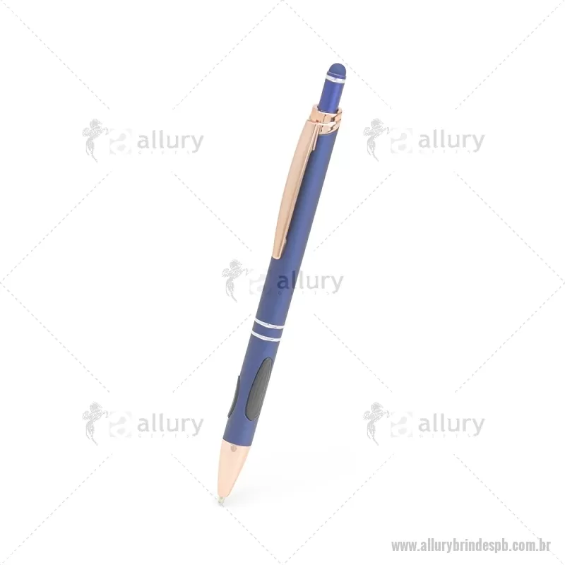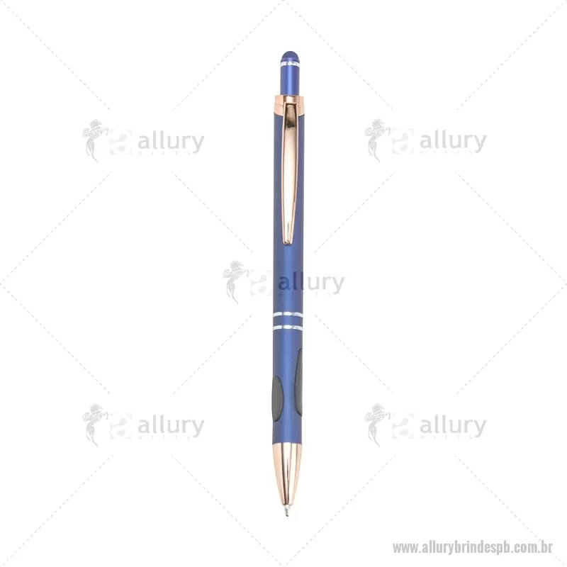 Caneta Metal Touch A elegância e o conforto combinados em uma única caneta esferográfica para garantir uma escrita mais agradável através da sua construção metálica e seu par de grips em borracha, além de ponta e clipe em plástico. Sua carga azul de 1.0 mm possui acionamento por clique com ponteira emborrachada que que permite seu uso como uma caneta touch para interação com smartphones, tablets e demais dispositivos de telas touchscreen. Largura : 1,5 cm x Circunferência : 4,5 cm x Comprimento : 14 cm Peso aproximado (g): 17 - - ALLPBCMT293
