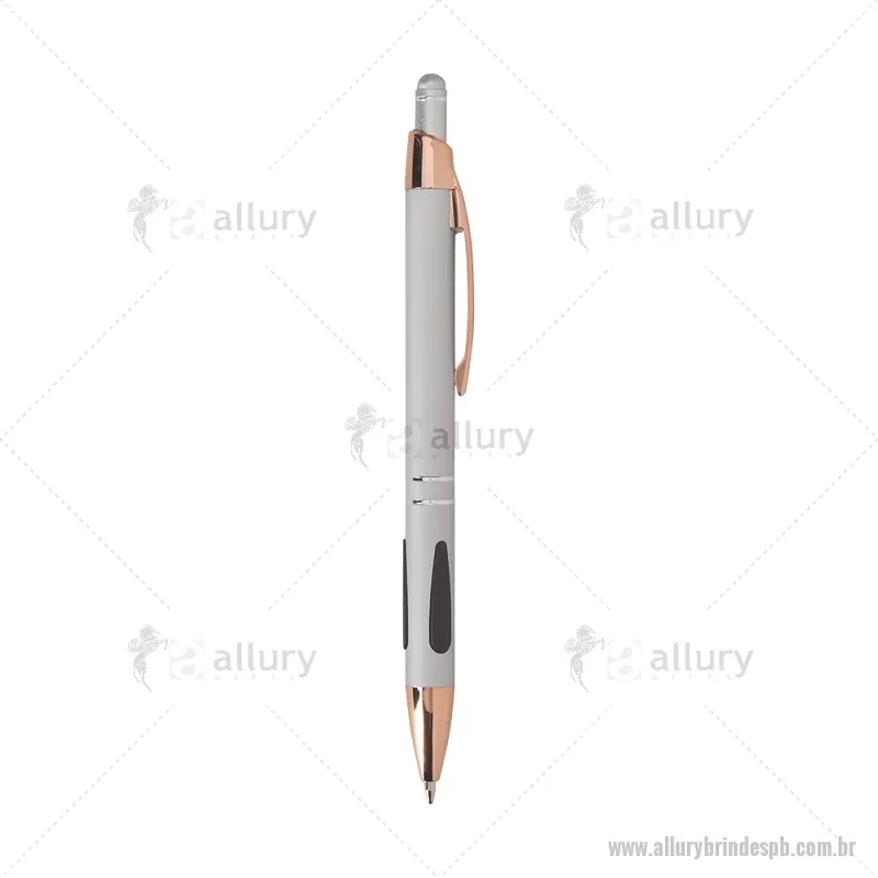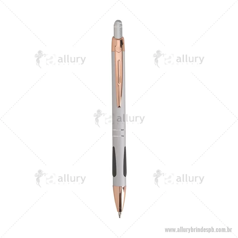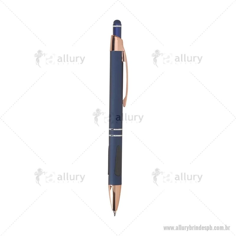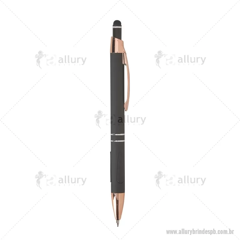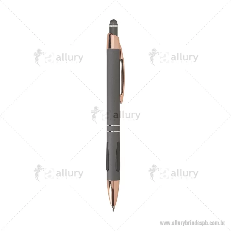 Caneta em metal com detalhes emborrachados, carga esferográfica azul 1,0 mm e acionamento por clique. Possui ponta touch emborrachada para uso em telas sensíveis ao toque, unindo escrita e praticidade em um só item. - - ALLPBCMT295