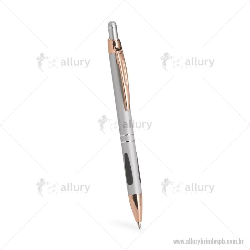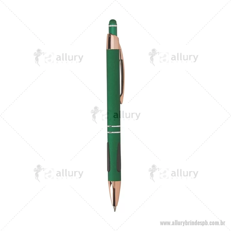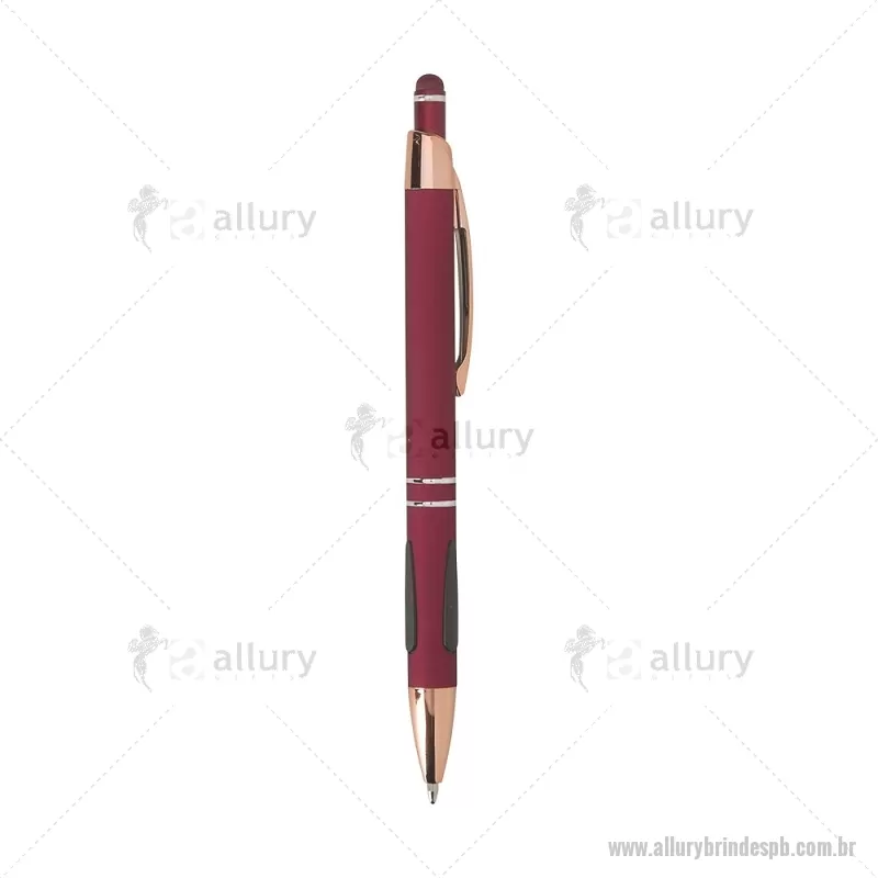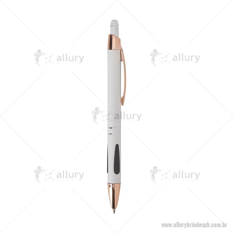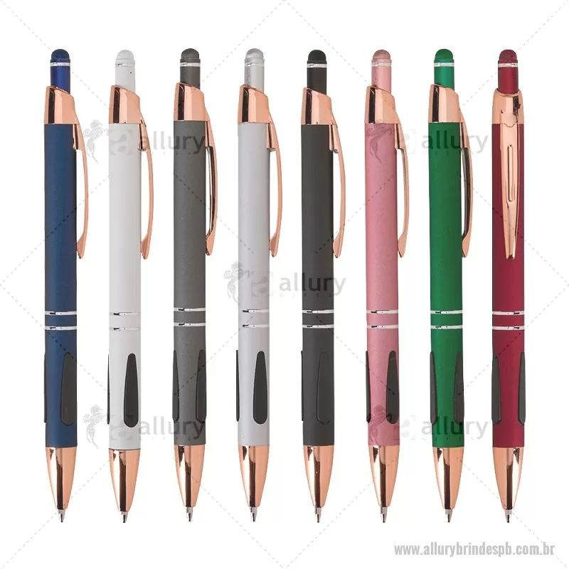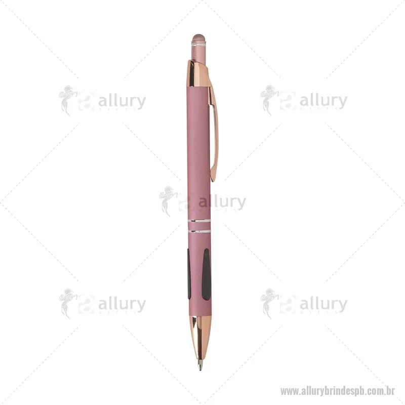 Caneta em metal com detalhes emborrachados, carga esferográfica azul 1,0 mm e acionamento por clique. Possui ponta touch emborrachada para uso em telas sensíveis ao toque, unindo escrita e praticidade em um só item. - - ALLPBCMT295