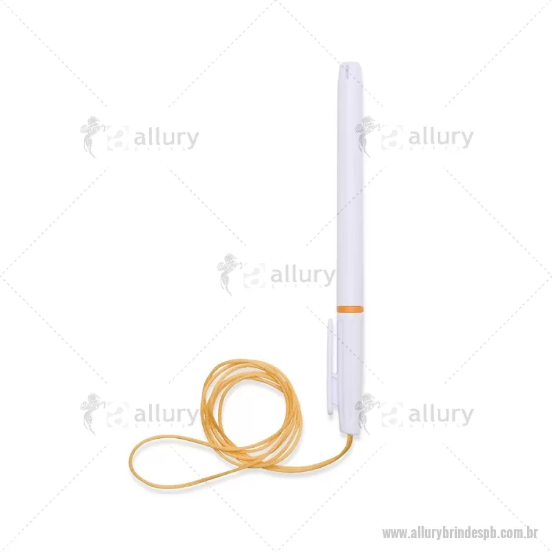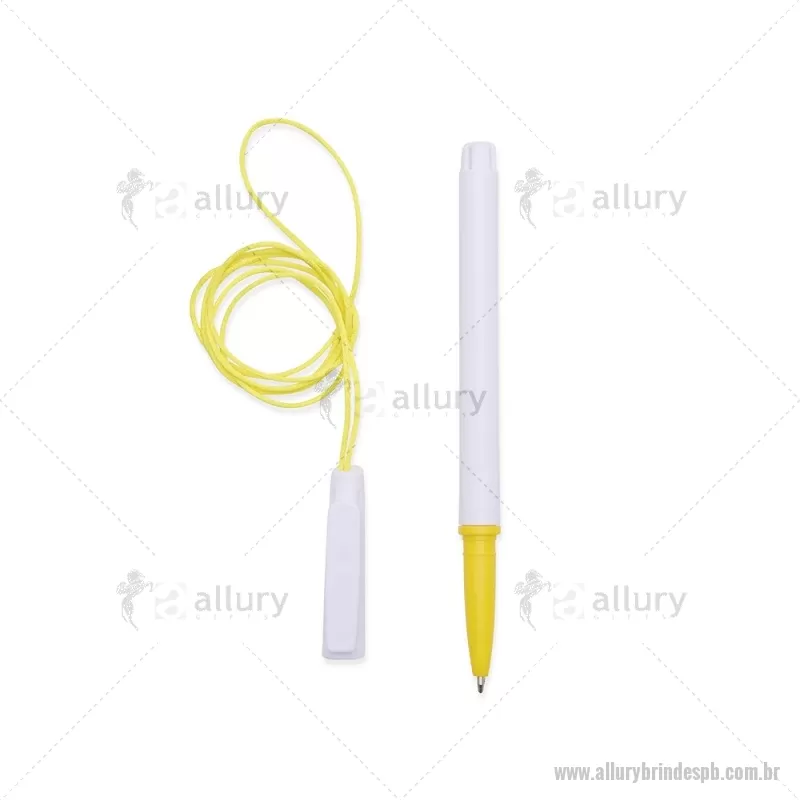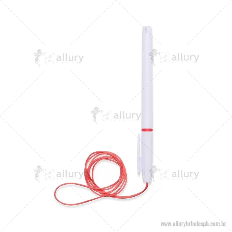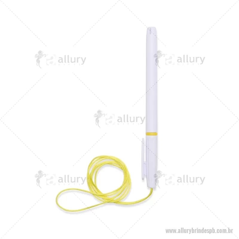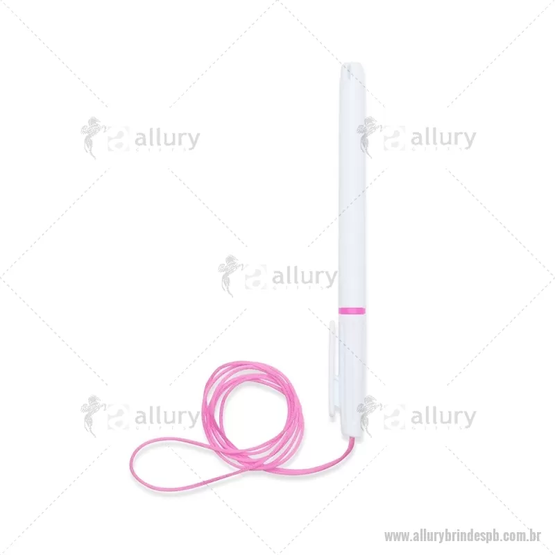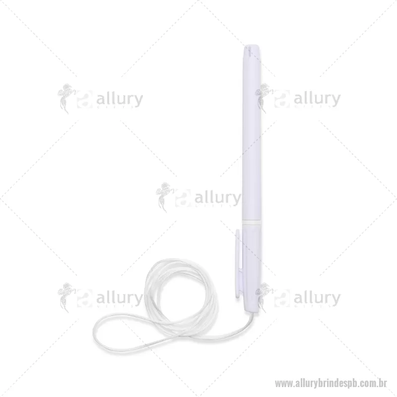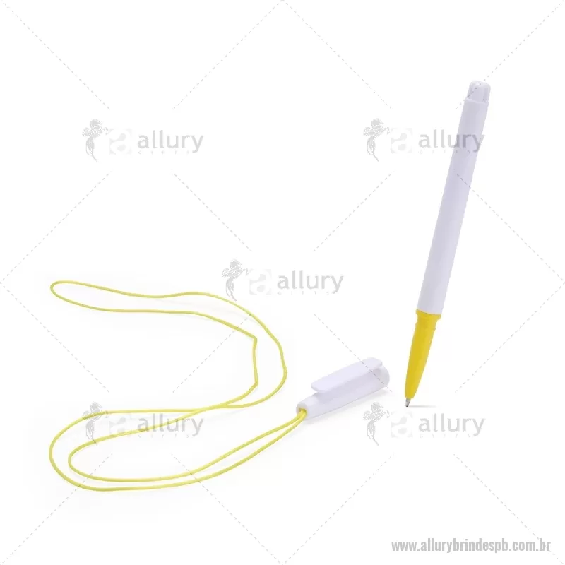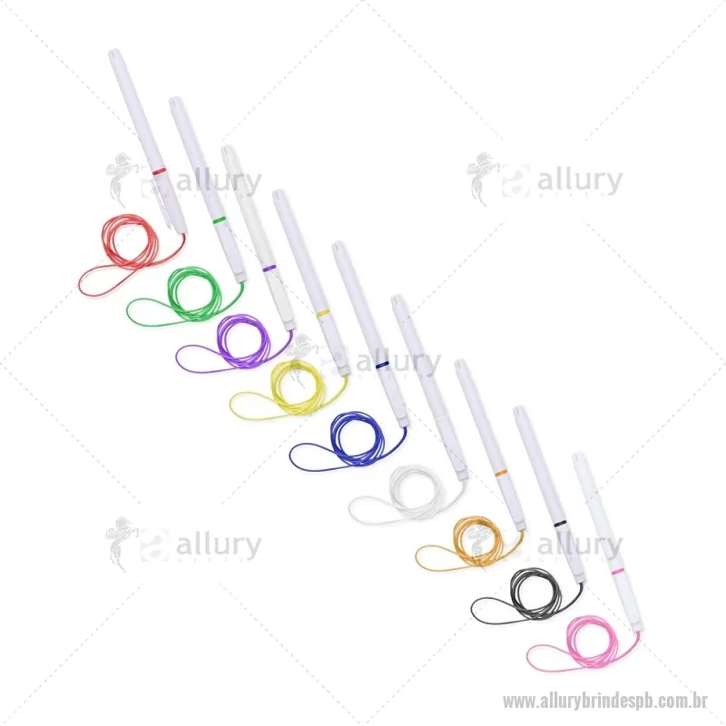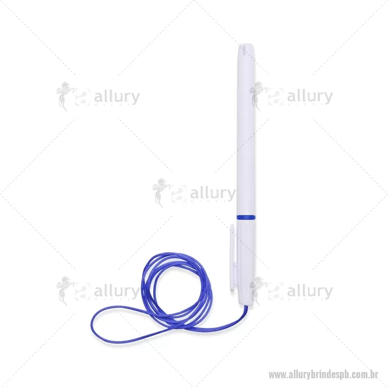 Caneta plástica com carga esferográfica azul 1,0 mm, acompanhada de cordão em nylon de 42 cm fixado na tampa. Leve e prática para uso diário. - - ALLPBCPL208