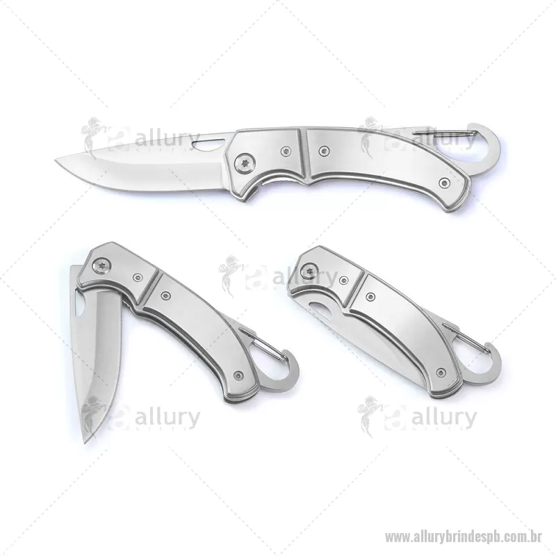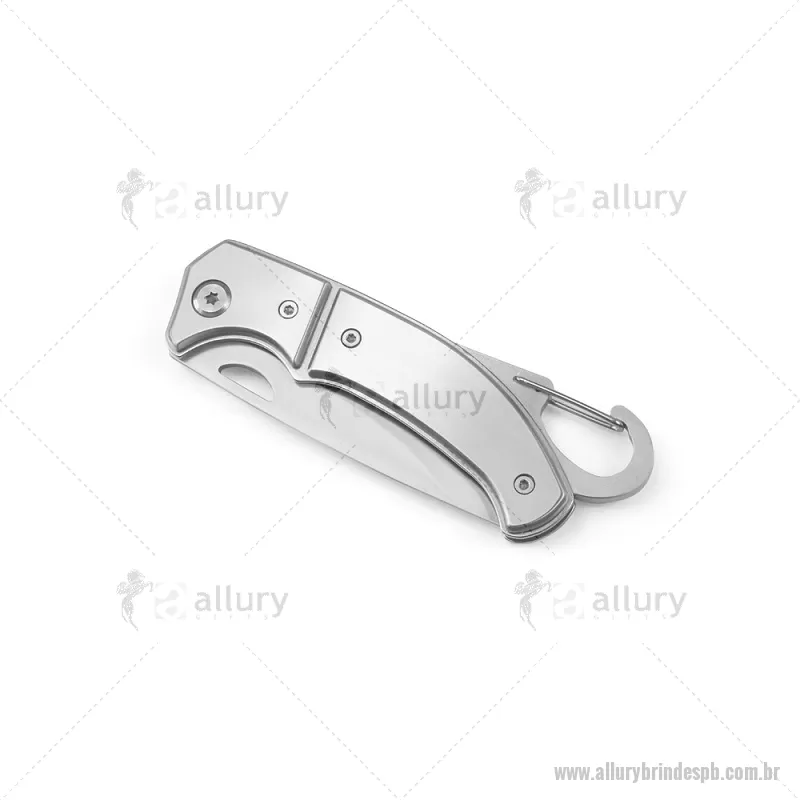 Canivete em aço inox e metal com fecho de segurança e clipe. Fornecido em caixa presente. Medidas do produto: 97 x 15 x 29mm | Caixa: 110 x 37 x 20 mm - - ALLPBCVT028