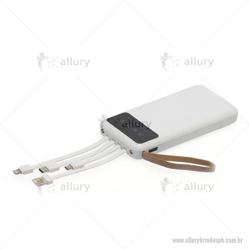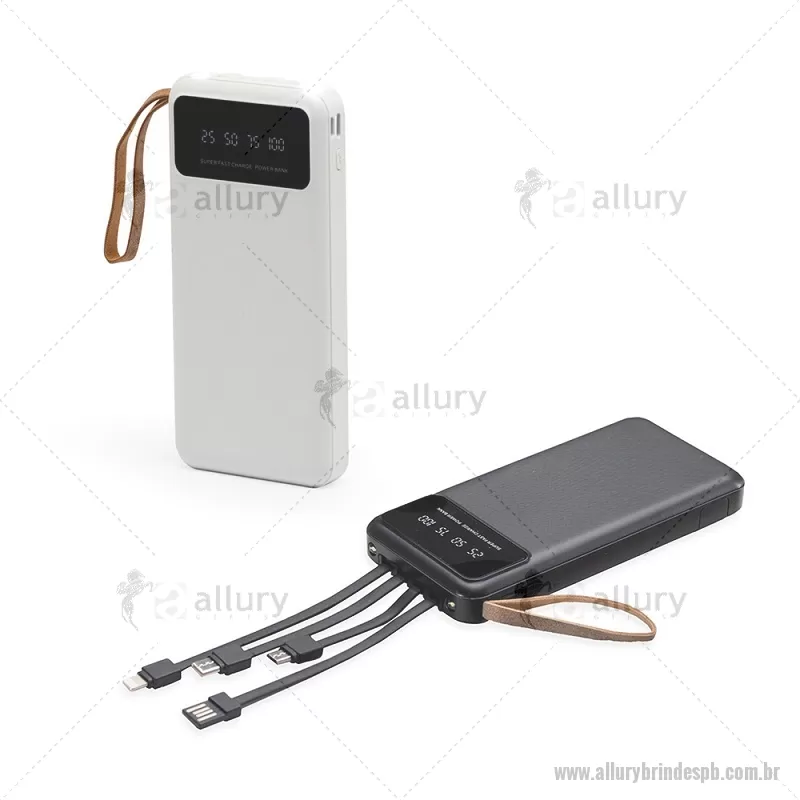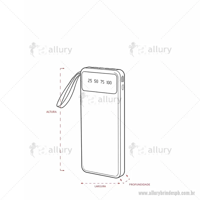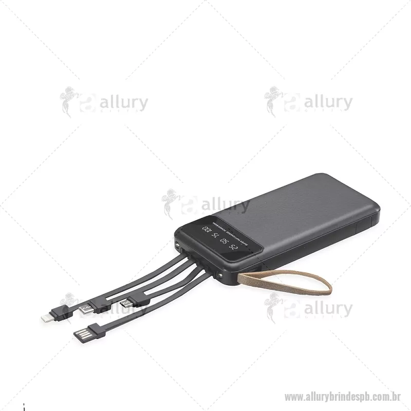 Power Bank 10.000mAh com Lanterna e Multissaídas Descrição: Carregador power bank de 10.000mAh com lanternas, múltiplas saídas e suporte para celular. Fabricado em plástico com display integrado, este power bank vem equipado com quatro cabos de carregamento, eliminando a necessidade de transportar cabos extras. Compatível com entradas V8, Tipo-C, Lightning e USB, praticidade é o sinônimo deste carregador. Com alça de couro sintético e um suporte funcional para celular, estilo gaveta, o power bank possui capacidade real de 6.000mAh para manter os dispositivos sempre carregados. Acompanha cabo USB-V8. medidas: Altura : 14,4 cm x Largura : 6,8 cm x Espessura : 2 cm Peso aproximado (g): 251 - - ALLPBTEC550