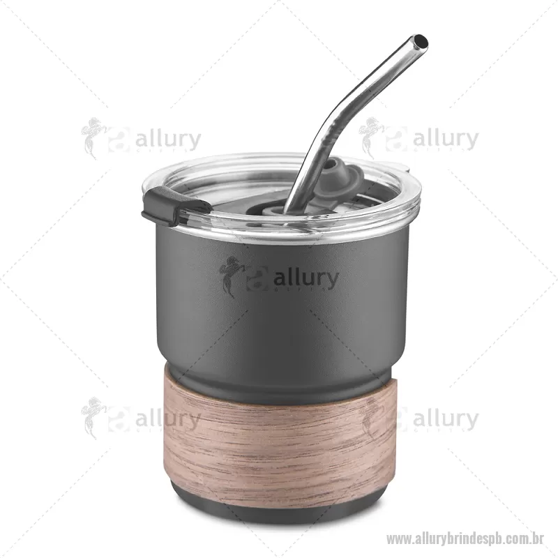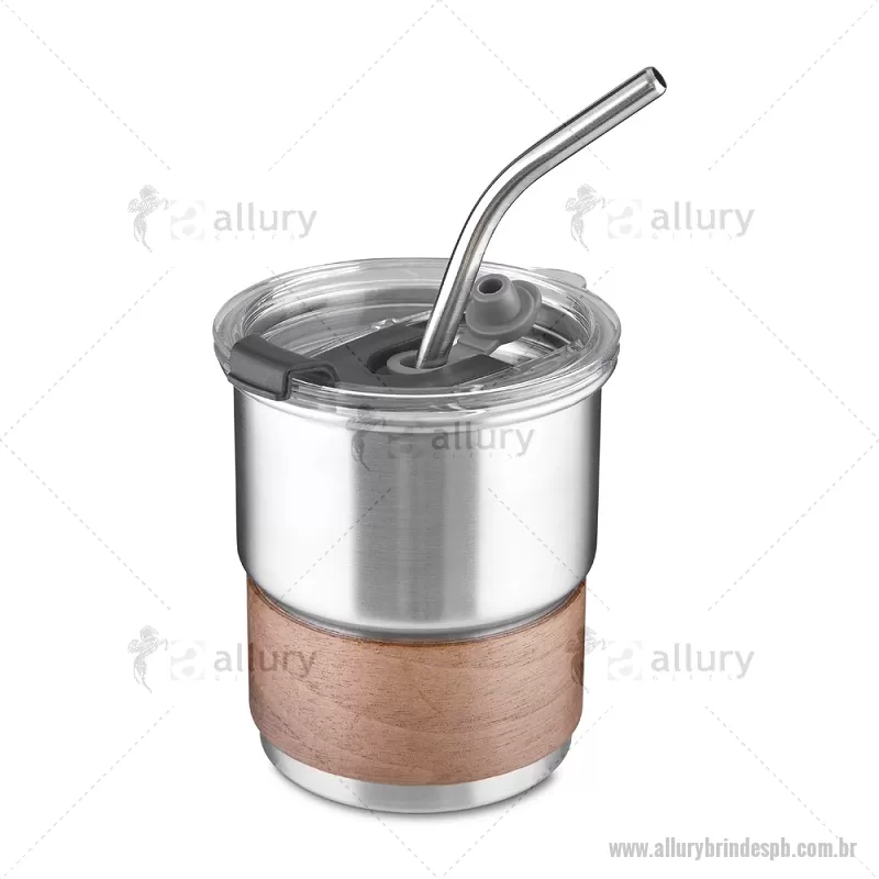 Copo em inox com Canudo Copo de parede simples em aço inox 304 com capacidade de 250ml, com canudo em inox. Tampa em plástico poliestireno (PS) que também possui um bico como forma alternativa de uso. Com pegador em fibra de noz. Possui acabamento externo com pintura fosca. Peso do Produto: 0,100kg Dimensão do Produto: 9xø7,5cm - - ALLPBCPO150