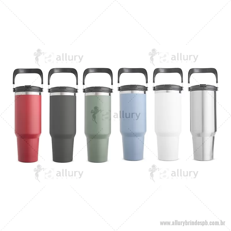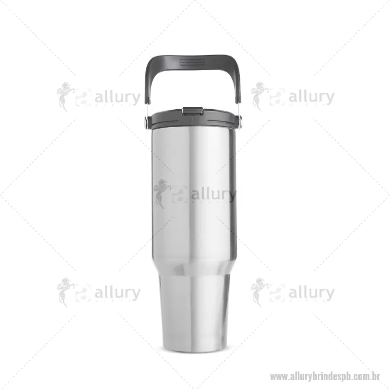 Copo térmico de 1,25 L em inox com parede dupla, ideal para manter a temperatura das bebidas por mais tempo. Possui tampa plástica rosqueável com vedação a vácuo, canudo plástico removível e alça em inox com revestimento em plástico para transporte seguro e prático. - - ALLPBCPO147