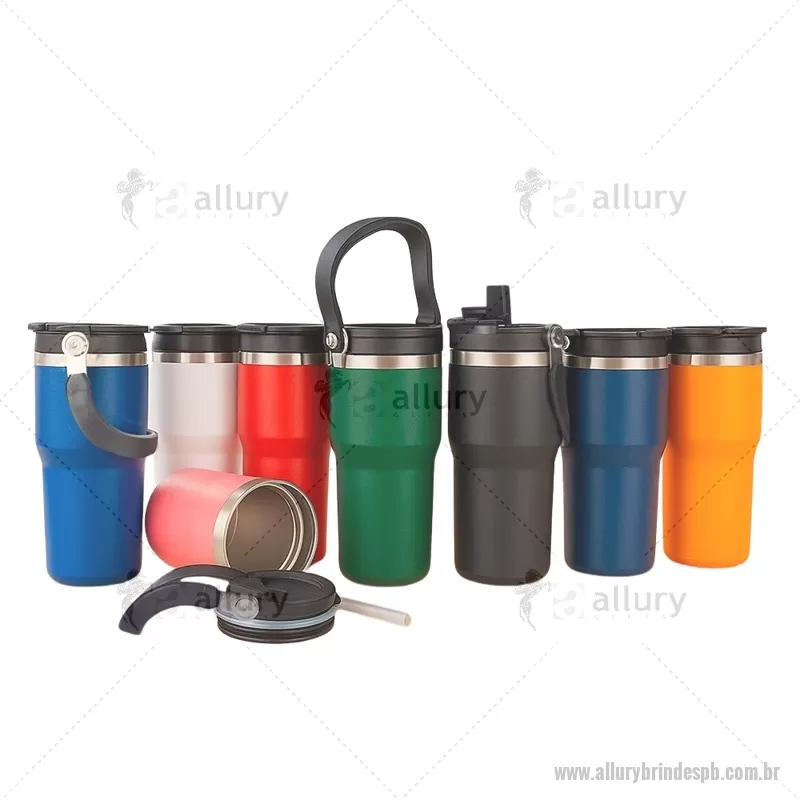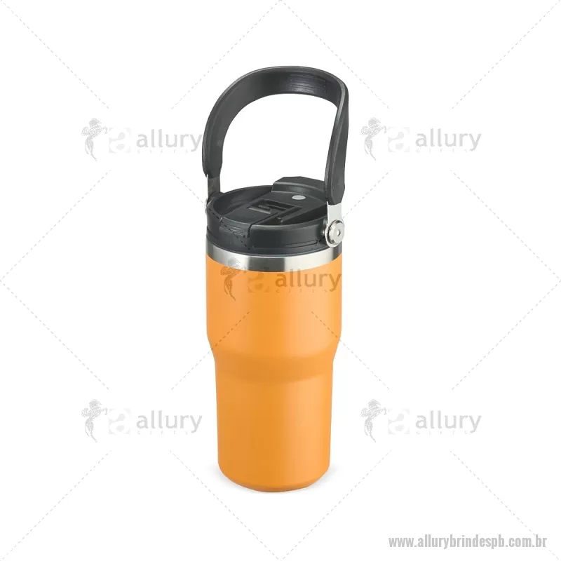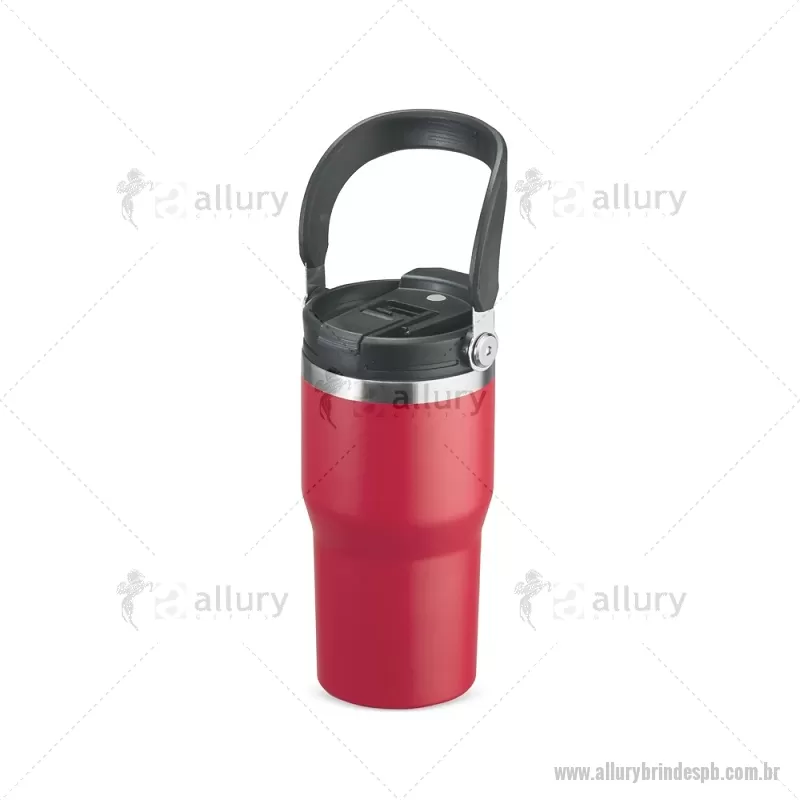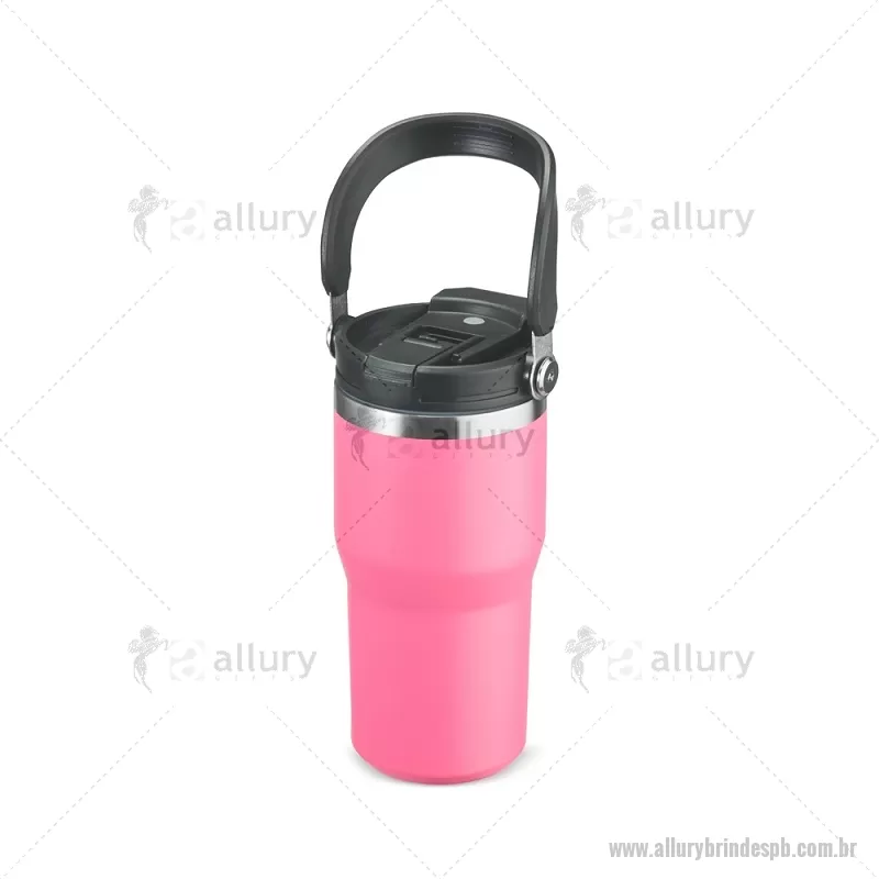 Copo térmico de 600 ml em inox com pintura eletrostática e parede dupla com vedação a vácuo, ideal para manter a temperatura das bebidas por mais tempo. Possui tampa rosqueável com bico flip e proteção para o bocal, canudo interno removível e alça fixa para transporte. Prático e resistente para o dia a dia. - - ALLPBCPO149