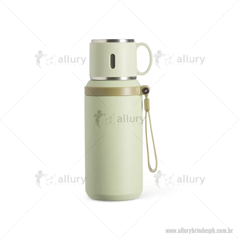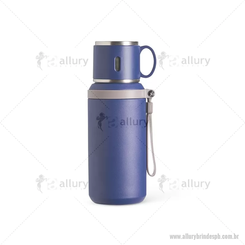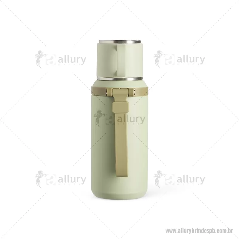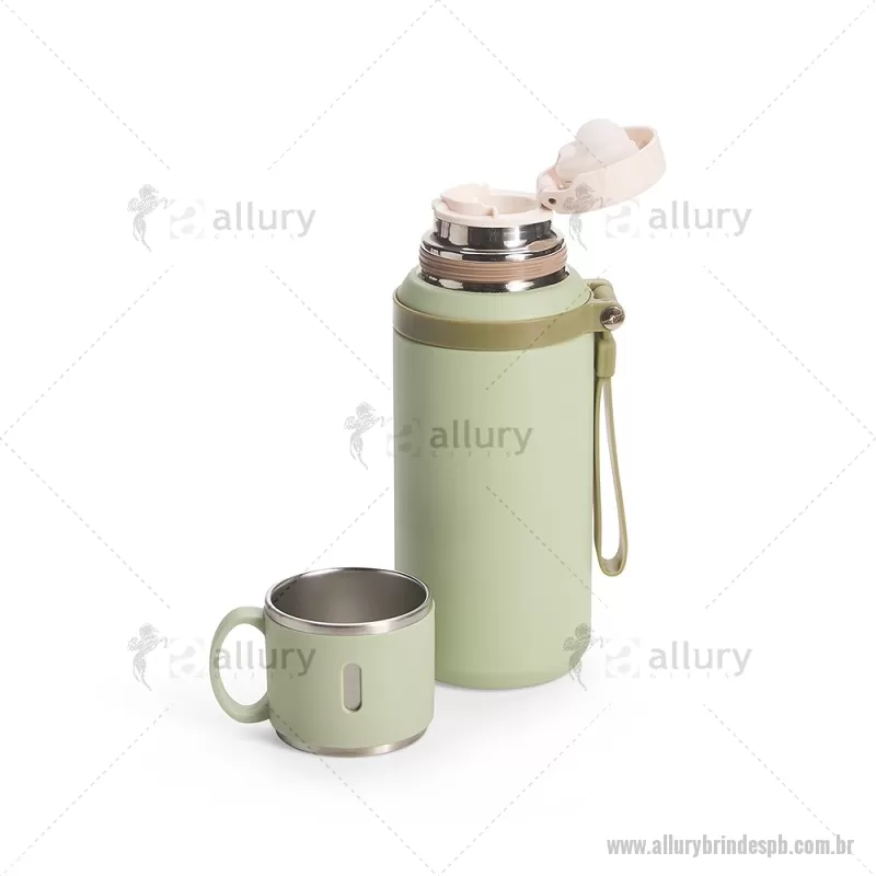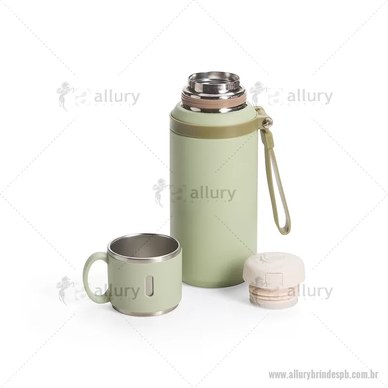 Garrafa térmica de 600 ml confeccionada em inox com acabamento em pintura eletrostática. Possui parede dupla para melhor conservação térmica, tampa interna rosqueável com anel de vedação, abertura do bocal por botão e infusor integrado. A tampa externa funciona como caneca e a alça emborrachada facilita o transporte, tornando o uso prático no dia a dia. - - ALLPBGAT160