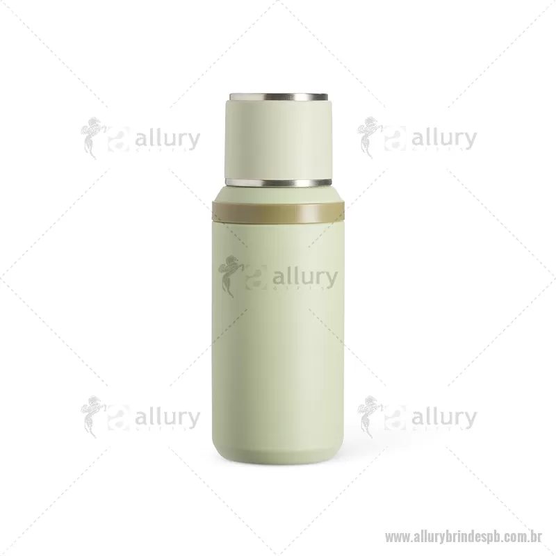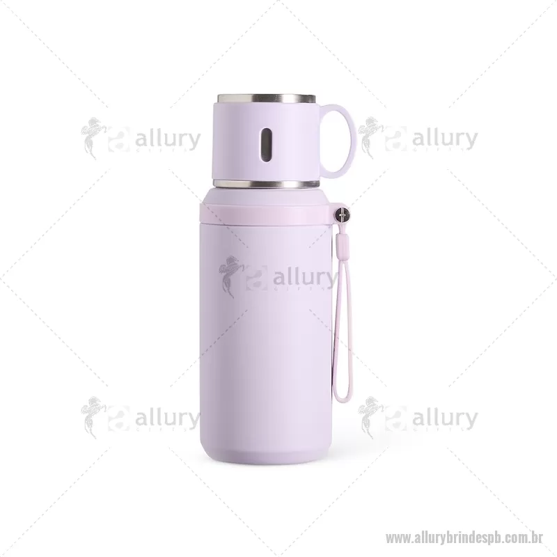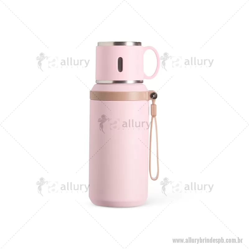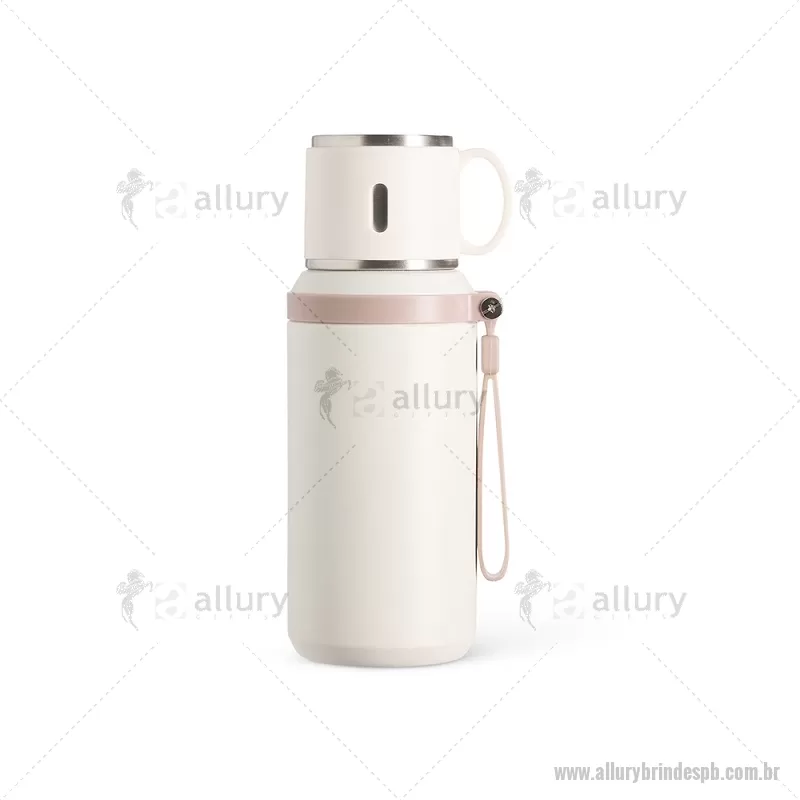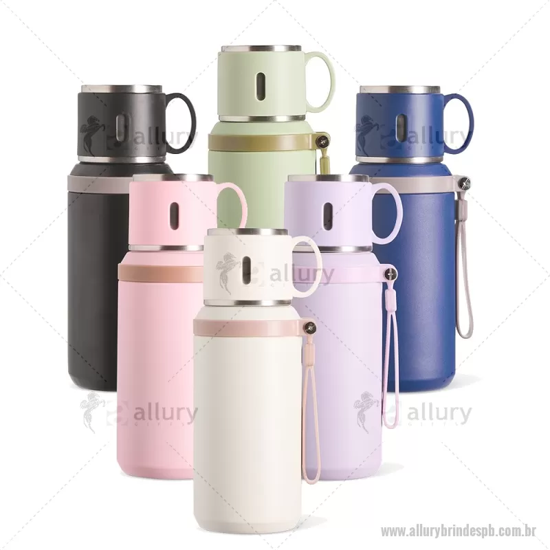 Garrafa térmica de 600 ml confeccionada em inox com acabamento em pintura eletrostática. Possui parede dupla para melhor conservação térmica, tampa interna rosqueável com anel de vedação, abertura do bocal por botão e infusor integrado. A tampa externa funciona como caneca e a alça emborrachada facilita o transporte, tornando o uso prático no dia a dia. - - ALLPBGAT160