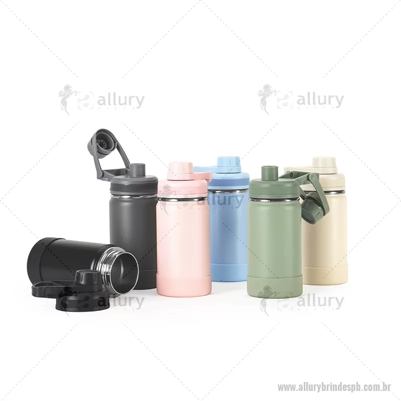 Garrafa Térmica 350ml Descrição: Garrafa térmica em inox, pintura eletrostática e capacidade para até 350ml. Conta com estrutura de parede dupla e vedação a vácuo, permitindo conservar a temperatura de líquidos por mais tempo. Possui tampa rosqueável com protetor para o bocal e alça fixa para facilitar o transporte. Acompanha protetor para a base em silicone. Altura : 18,2 cm x Largura : 10 cm x Circunferência : 23 cm Peso aproximado (g): 238 - - ALLPBGAT158