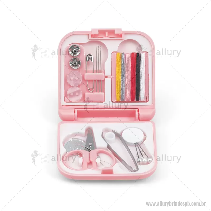 Kit de costura prático e leve para viagem Conjunto de costura prático e leve para levar em viagem. Composto por 3 alfinetes, 3 agulhas, 1 pinça, 1 tesoura, 1 enfia linha, 1 alfinete, 2 botões, 2 colchetes e 6 rolos de linhas de várias cores. Fornecido em estojo. Medidas: 70 x 21 x 65 mm Peso do Produto (g.): 46 - - ALLPBFEM084