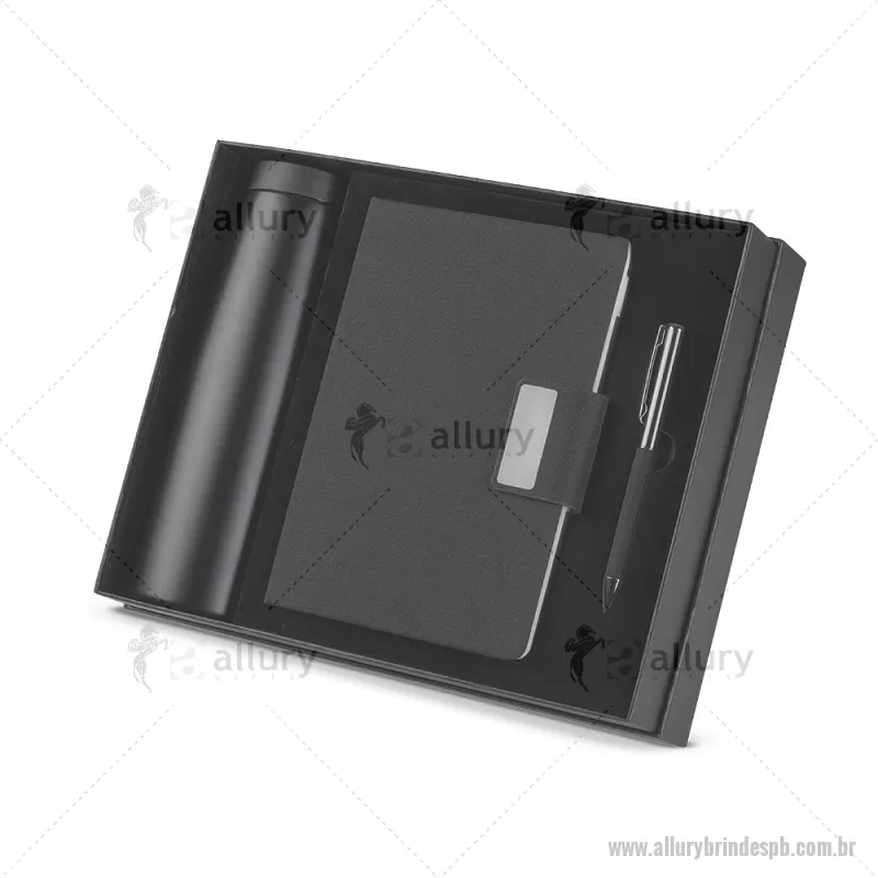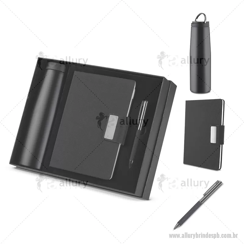Kit escritório Caderno, Garrafa e Caneta Metalica Conjunto composto por caderno em material RPET com fechamento magnético,com 100 páginas, caneta modelo twist com detalhe em tecido RPET preto e garrafa de parede dupla em inox (304 interno e 201 externo), com capacidade de 550ml. Acompanha caixa presenteável. Peso do Produto: 0,256kg (Caderno) Peso do Produto: 0,277kg (Garrafa) Peso do Produto: 0,019kg (Caneta) Peso do Produto: 0,491kg (Caixa) Dimensão do Produto: 23,5x7,1cm (Garrafa) Dimensão do Produto: 21x14,5cm (Caderno) Dimensão do Produto: 7,6x30x24,7cm (Estojo presenteável) - - ALLPBKES083