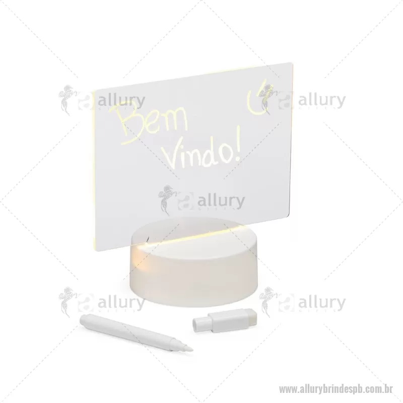 Luminária de Mesa Led Deixe qualquer espaço mais aconchegante e repleto de recadinhos incríveis com a nossa luminária. Com sua tela acrílica 3D, é possível soltar a criatividade e deixar mensagens inspiradoras, lembretes importantes ou até desenhos fofos, tudo de um jeito prático e super divertido! Com um funcionamento super simples, ela se conecta com cabo via USB integrado à base plástica ou por meio de 3 pilhas AAA (1.5V) não inclusas. Além disso, acompanha uma caneta plástica com apagador integrado, tornando a experiência ainda mais interativa e funcional. Essa luminária é perfeita para iluminar o ambiente e deixar recadinhos incríveis do seu jeito! Altura : 15,3 cm x Largura : 15 cm x Profundidade : 8,6 cm Tamanho total aproximado (CxL): Caneta: 11,2 cm x 1,2 cm Peso aproximado (g): 128 - - ALLPBLL031