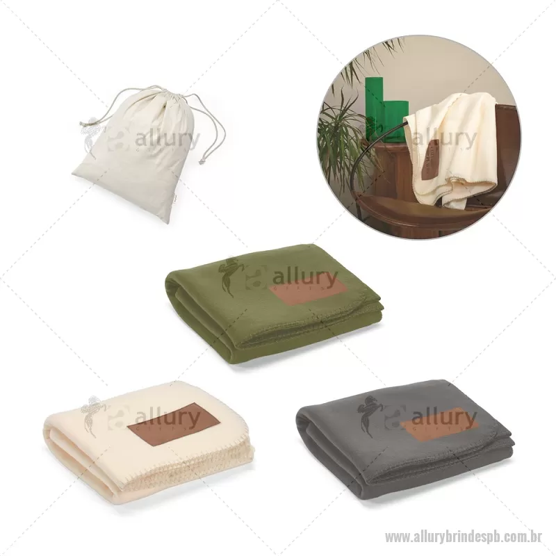 Manta em tecido polar, 100% poliéster reciclado (100% rPET), com área para personalização em microfibra. Fornecido em saco de tecidos 100% reciclado (70% algodão reciclado e 30% poliéster reciclado), com gramagem de 140 g/m². Medidas: 1600 x 1200 mm | Saco: 400 x 320 mm Peso do Produto (g.): 620 - - ALLPBMAT007