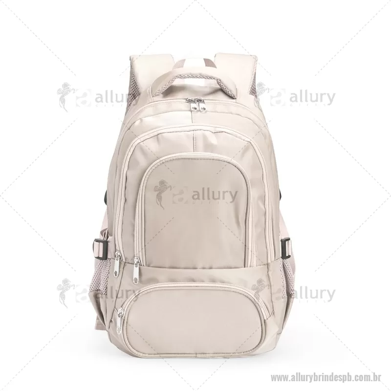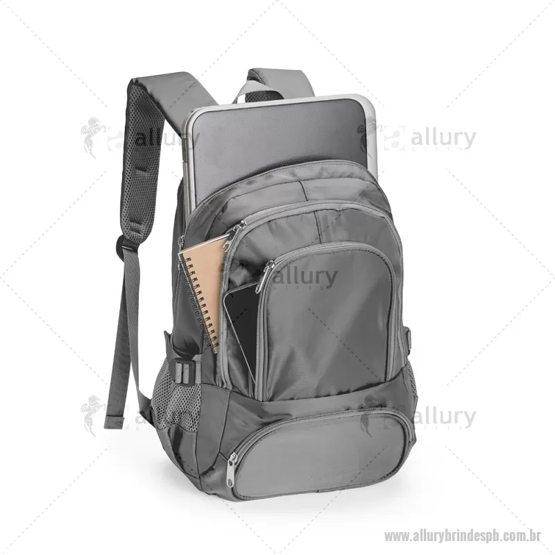 Mochila Poliéster 17 Litros Descrição: Mochila feita em poliéster impermeável com capacidade de até 17 litros. Possui compartimento interno que inclui um pequeno bolso com zíper e divisória acolchoada para notebooks de até 14 polegadas. Conta ainda com três bolsos externos em tamanhos diferentes e mais dois bolsos laterais em tela com regulagem. As alças de costas e de mão possuem revestimento espumado. Altura : 37 cm x Largura : 31 cm x Profundidade : 15 cm Peso aproximado (g): 463 - - ALLPBMC246