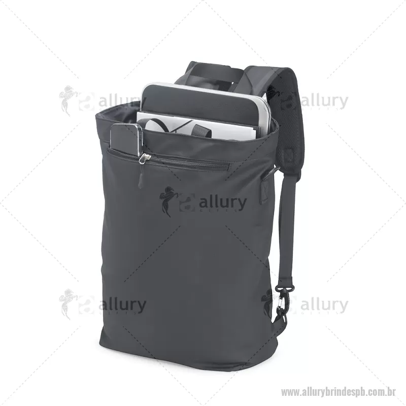 Mochila em PU resistente à água com capacidade de 26 litros e design versátil, permitindo uso em três formatos. Possui três compartimentos: frontal, traseiro multifuncional (que acomoda as alças ou funciona como bolso extra) e compartimento principal amplo com bolso interno em zíper. Conta com alças de mão, alças para uso como mochila e alça transversal removível, unindo praticidade, organização e estilo para o dia a dia ou viagens. - - ALLPBMC252