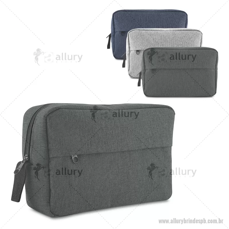 Nécessaire em poliéster 300D, equipada com alça para transporte e bolso frontal com fechamento em zíper. Compacta e prática para organizar pequenos itens do dia a dia. - - ALLPBNC145