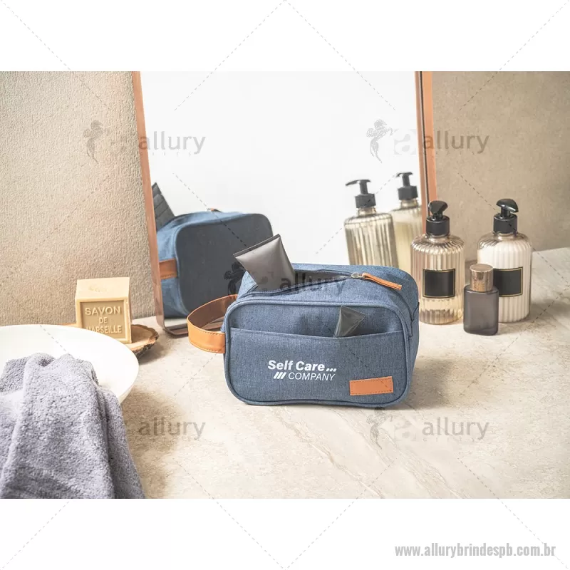 Nécessaire para cosméticos em 600D de alta densidade e pega em PU Bolsa de cosméticos em 600D de alta densidade e pega em PU. Contém bolso frontal com zíper e placa em PU. Medidas: 220 x 130 x 130 mm Peso do Produto (g.): 126 - - ALLPBNC142