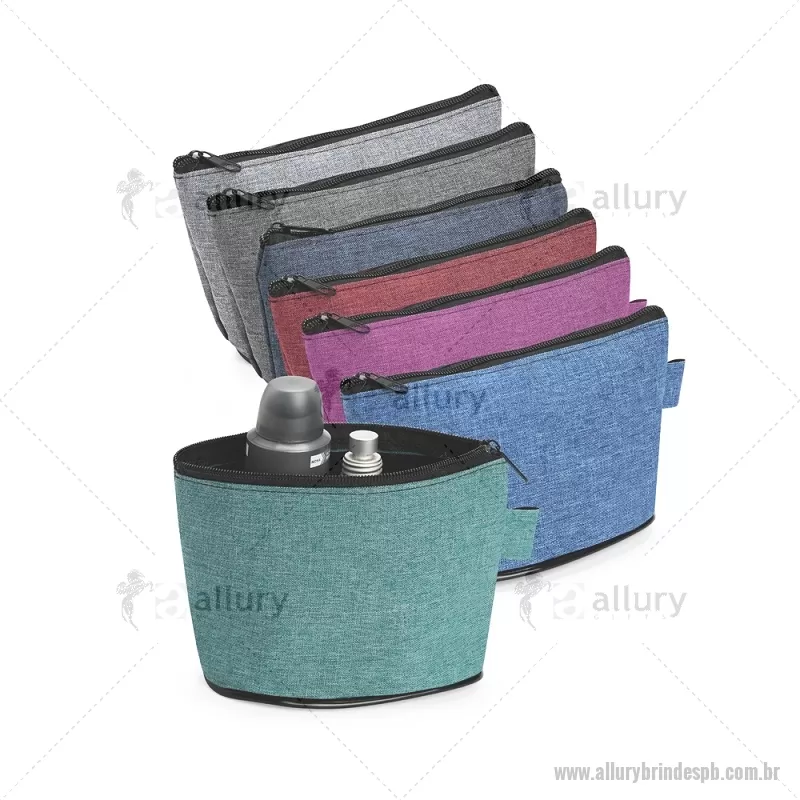 Nécessaire em poliéster com mescla de PVC, resistente à água e com fechamento em zíper. Possui pequena alça lateral, ideal para prender chaveiros ou ganchos, oferecendo praticidade no uso diário. - - ALLPBNC148