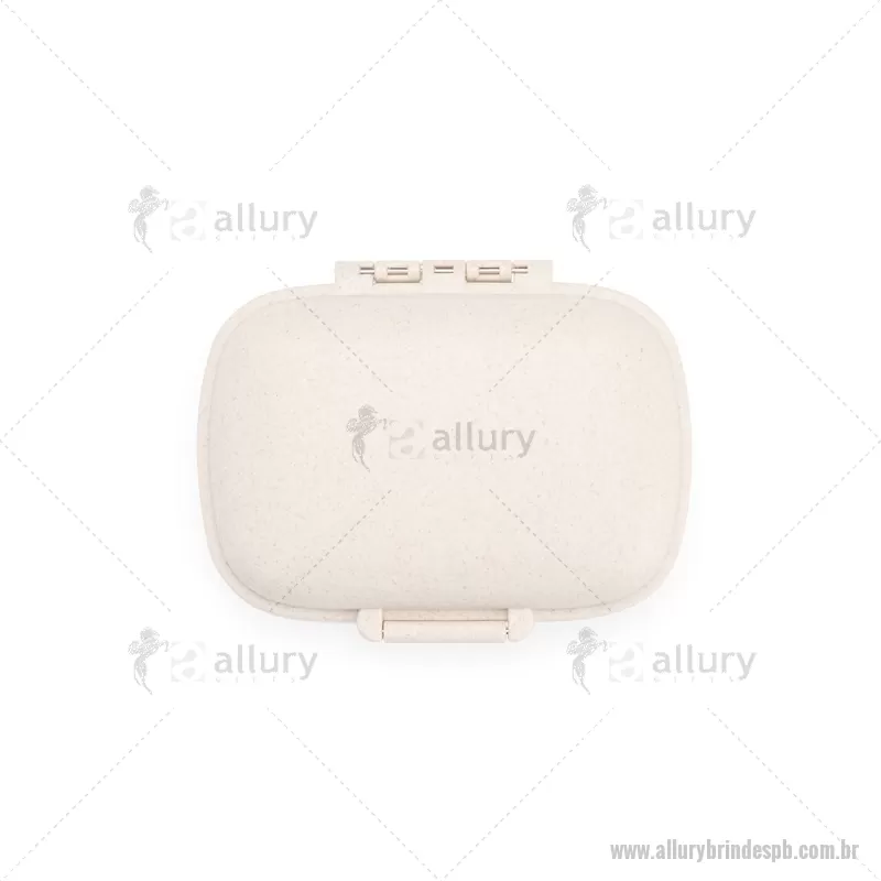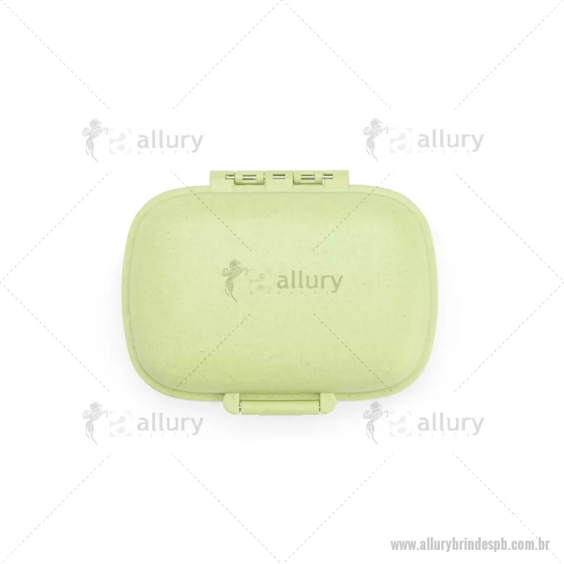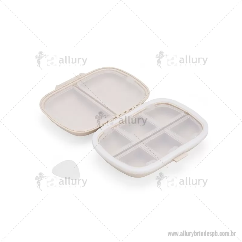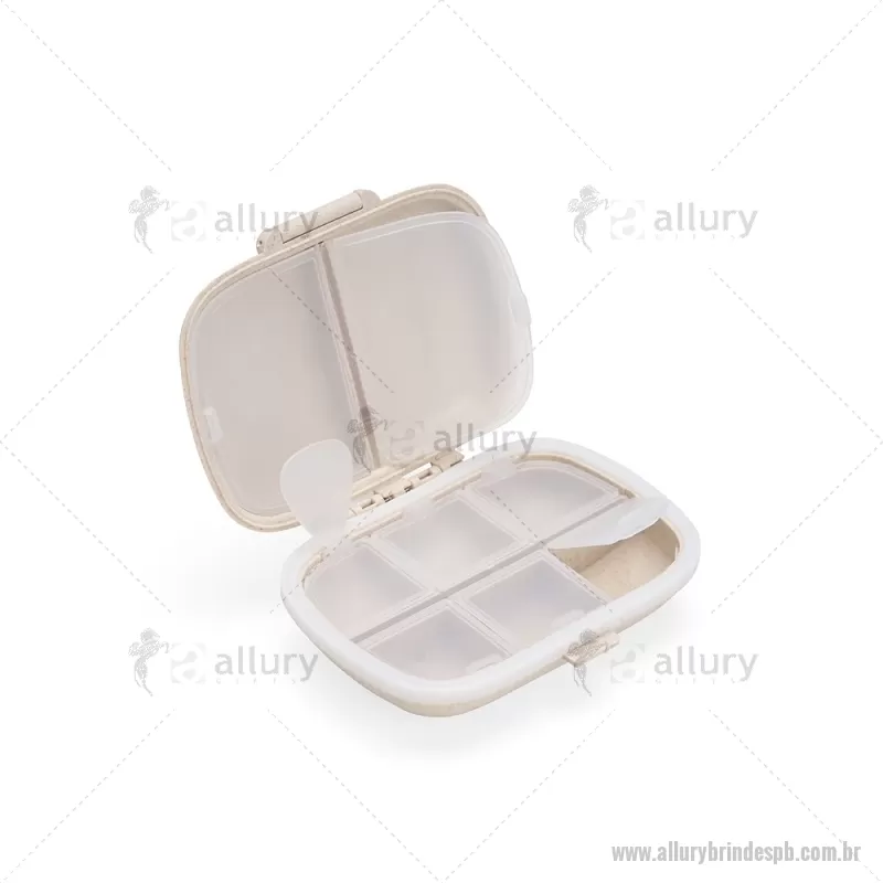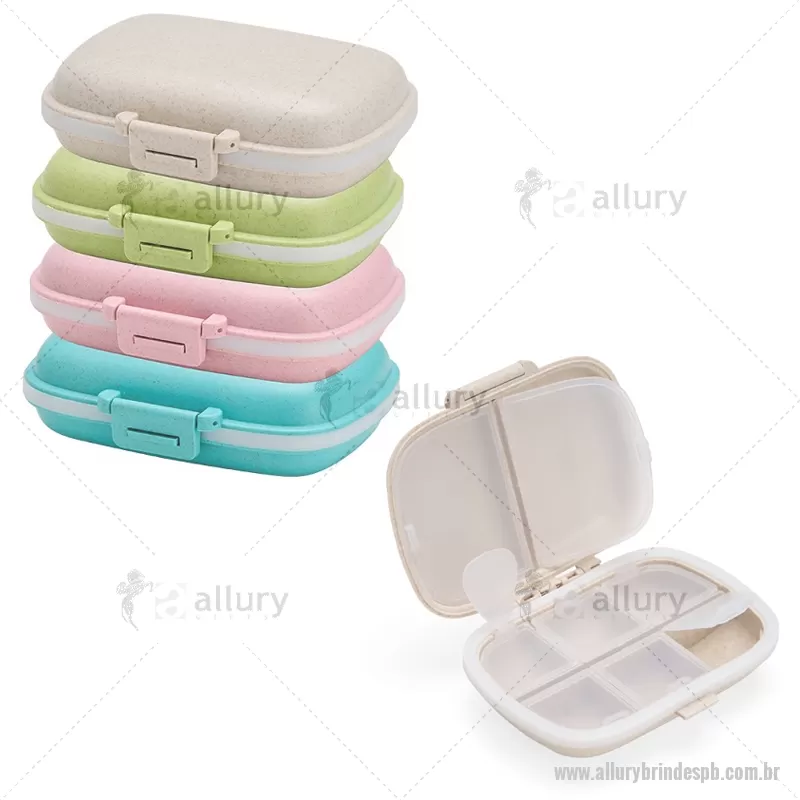 Porta-Comprimidos Plástico Porta-comprimidos compacto feito em plástico obtido da palha de trigo e anel de vedação para as bordas em silicone. Possui oito compartimentos com tampas removíveis, sendo dois maiores com capacidade de até 30ml e seis menores com até 10ml cada. Acompanha palheta multiuso. Largura : 8,6 cm x Espessura : 3,6 cm x Comprimento : 11 cm Peso aproximado (g): 72 - - ALLPBPCP016