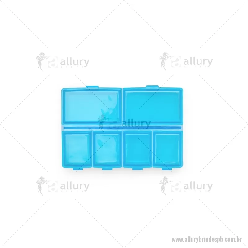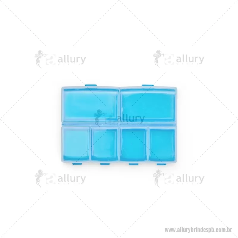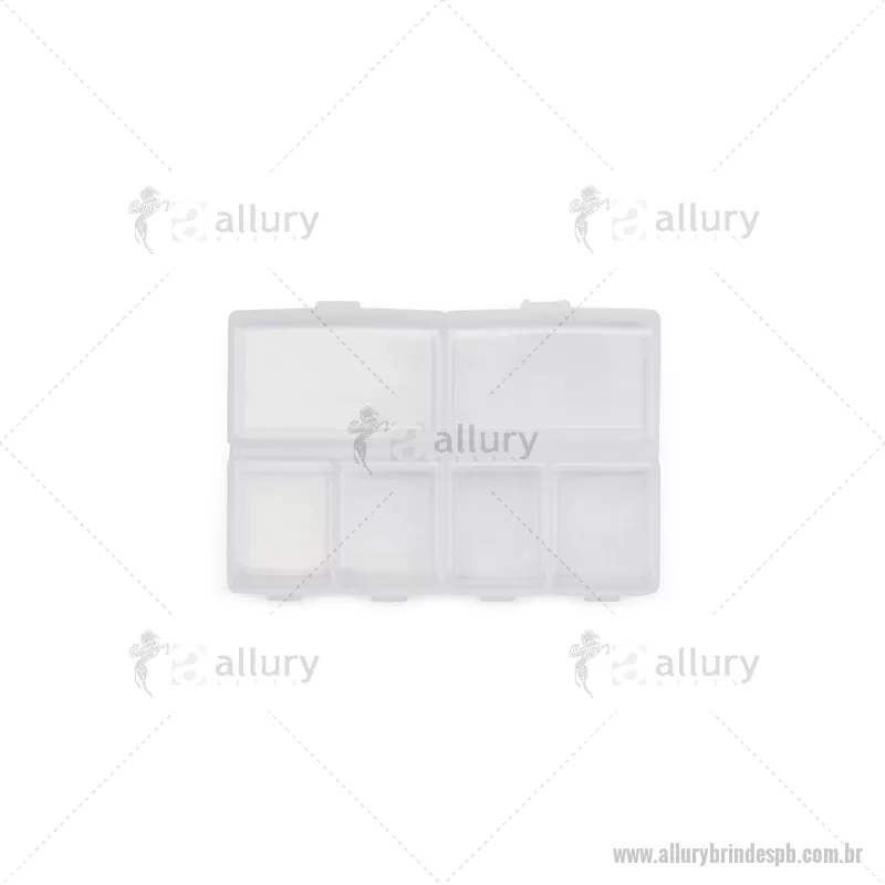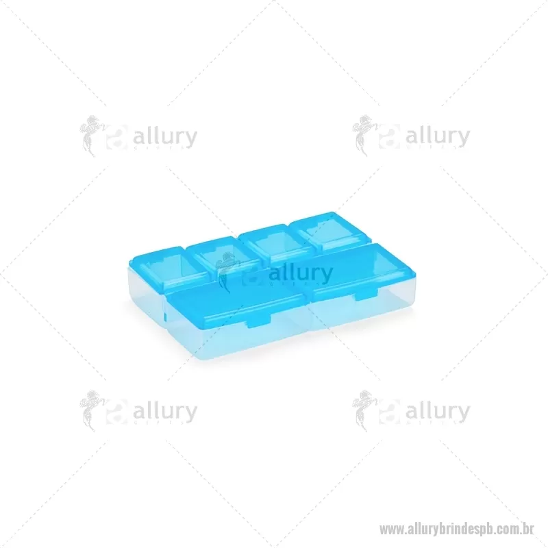 Porta-Comprimidos Plástico Descrição: Porta-comprimidos em plástico com seis compartimentos, dois maiores e outros quatro menores, oferecendo mais possibilidades de organização. Largura : 6,4 cm x Espessura : 1,9 cm x Comprimento : 9,5 cm Peso aproximado (g): 23 - - ALLPBPCP015