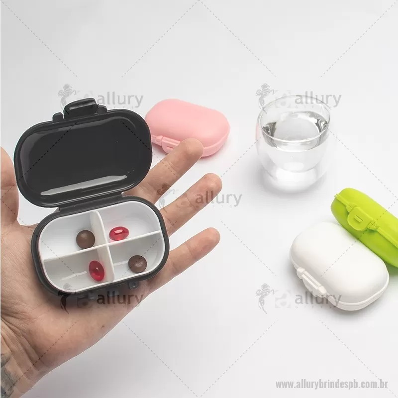Porta-Comprimidos Plástico Descrição: Porta-comprimidos feito em plástico. Possui compartimento removível com quatro divisórias, o que facilita a limpeza e ajuda a organizar medicamentos ou pequenos objetos. Largura : 6,5 cm x Espessura : 3,7 cm x Comprimento : 9,6 cm Peso aproximado (g): 36 - - ALLPBPCP019