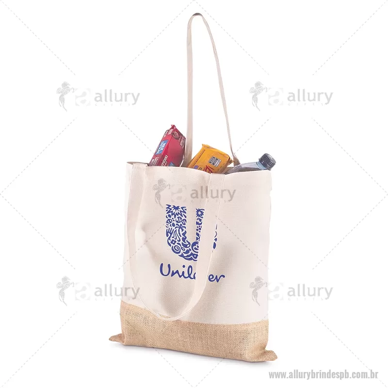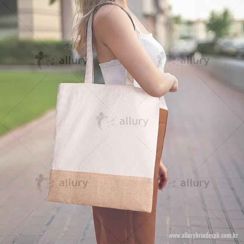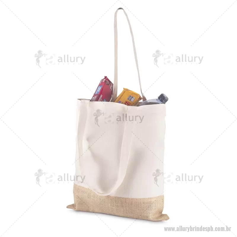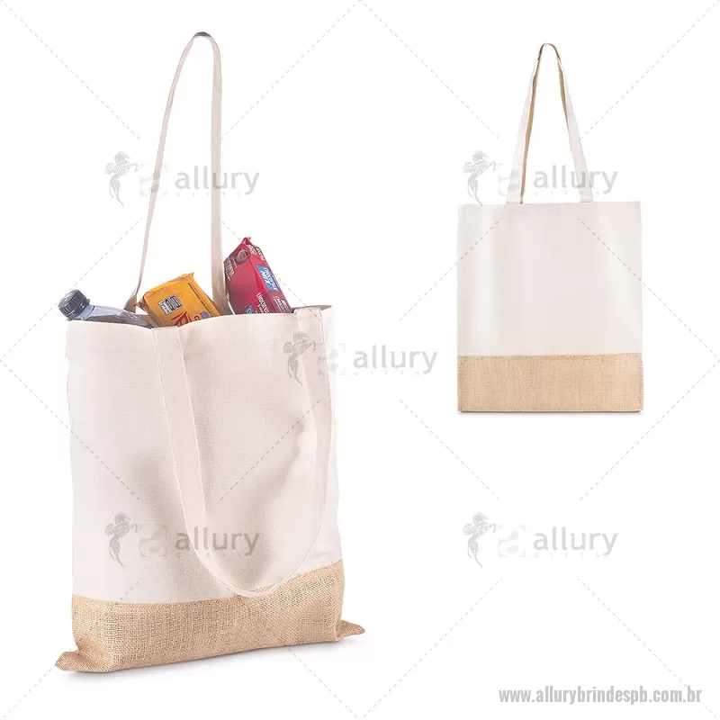 Sacola em Algodão e Juta 220g/m² (42x38x8,5cm) Sacola em Algodão Cru 220g/m² com detalhe em Juta. Alça com altura de 30 cm, ideal para transporte. Dimensão Produto: 42x37,5x8,5cm (AxLxP) Peso do Produto: 0,120kg Volume: 13L - - ALLPBSAC106